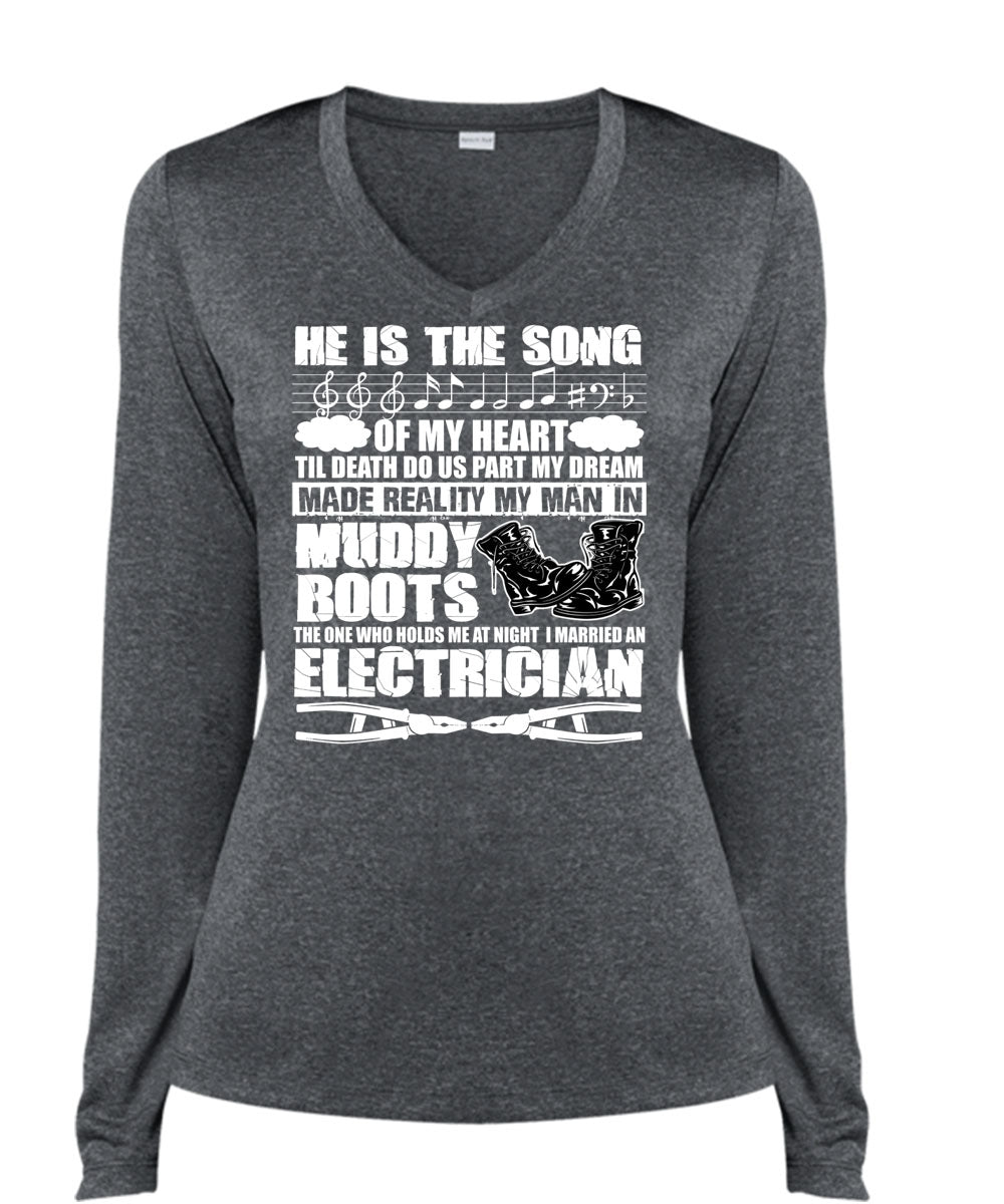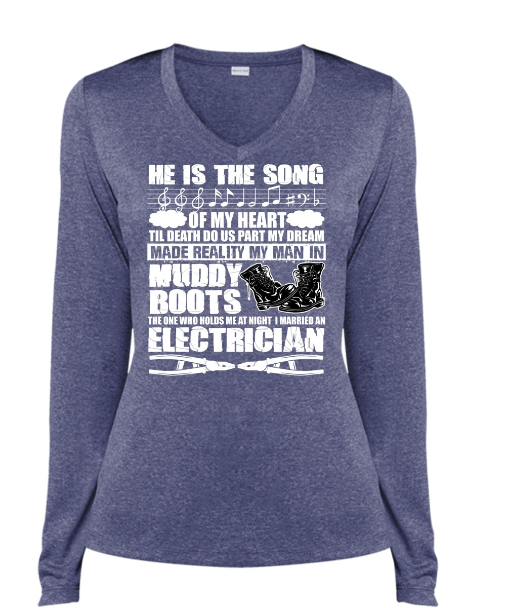 I Married An Electrician T Shirt, He Is The Song T Shirt, Cool Shirt (Ladies LS Heather V-Neck)