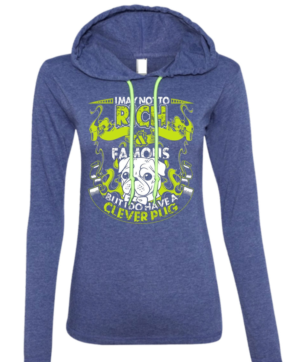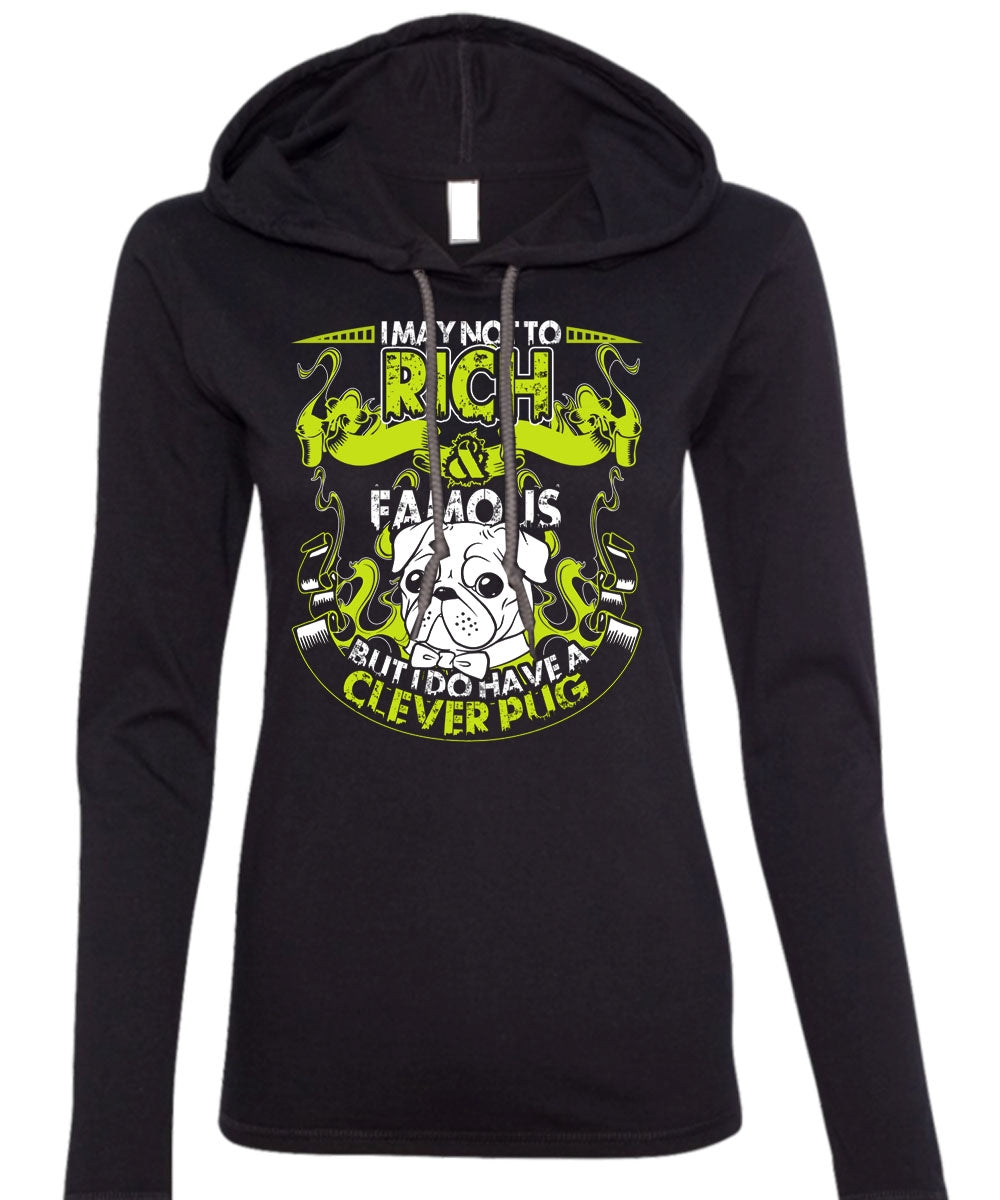 I May Not To Rich Famous T Shirt, I Do Have A Clever Pug T Shirt (Anvil Ladies Ringspun Hooded)