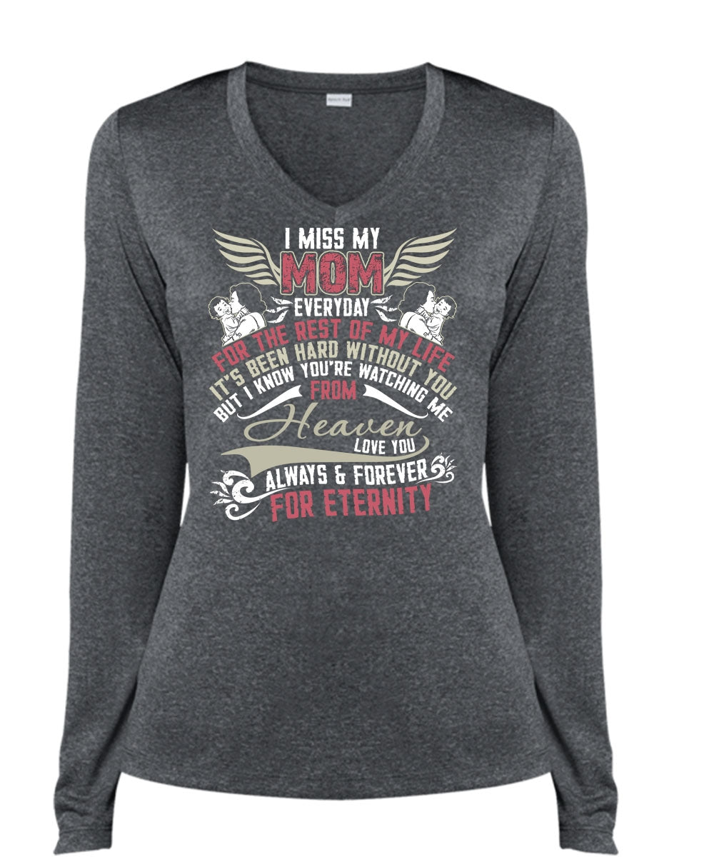 I Miss My Mom T Shirt, Watching Me From Heaven T Shirt, Cool Shirt (Ladies LS Heather V-Neck)