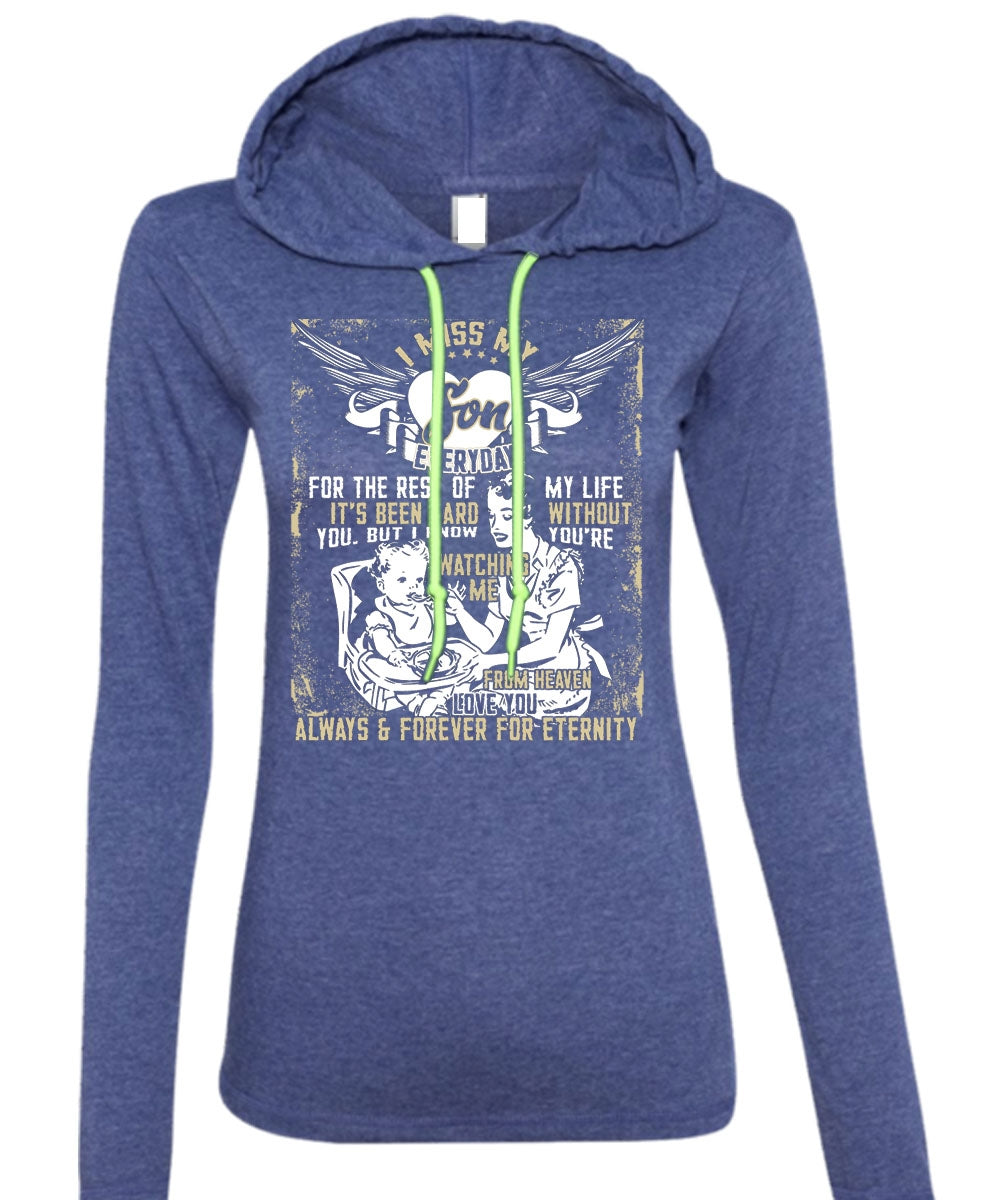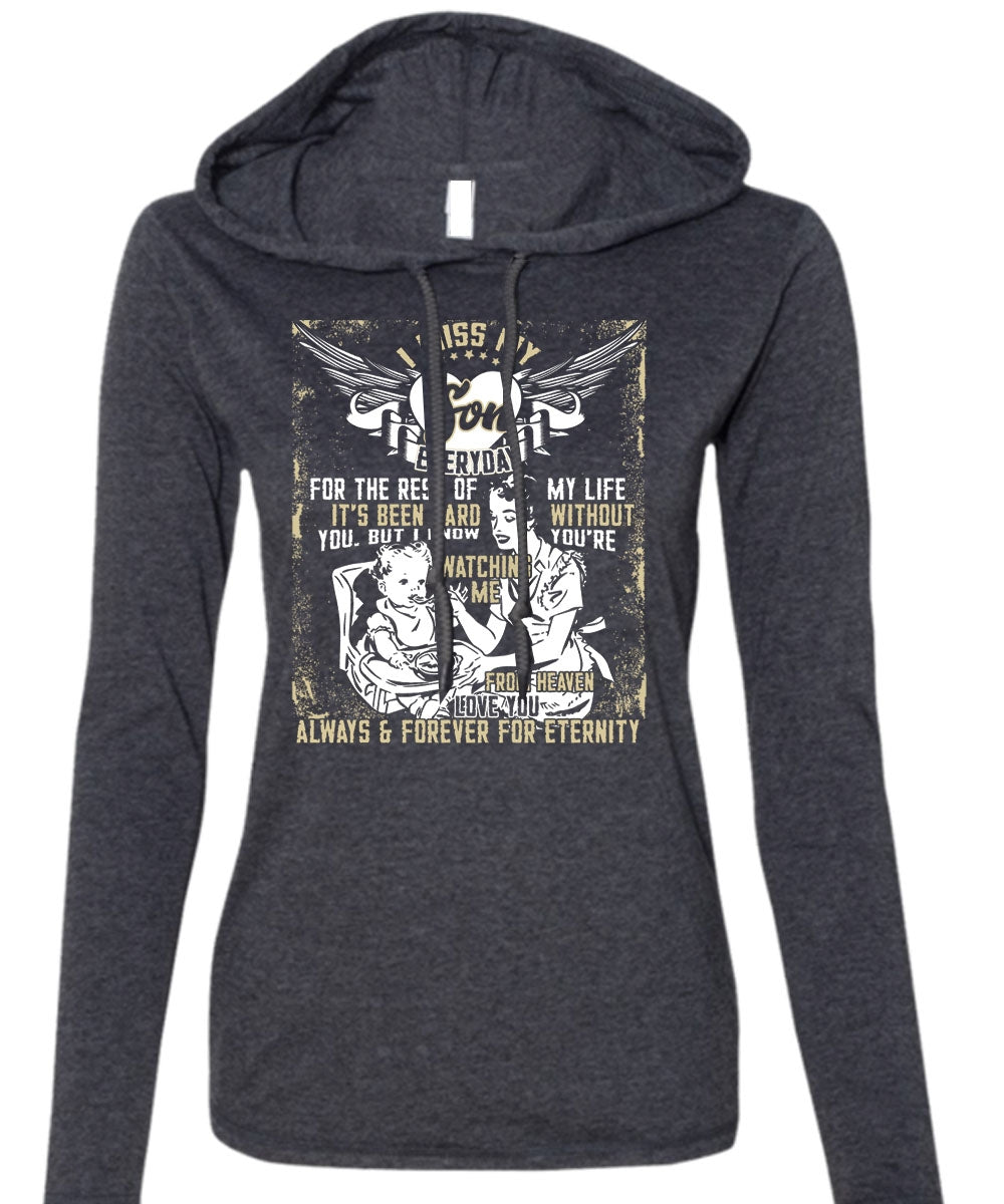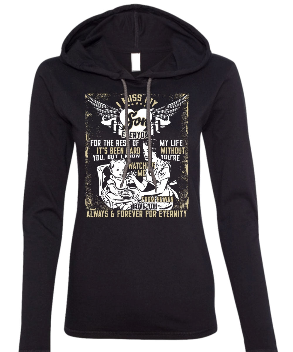 I Miss My Son T Shirt, Watching Me From Heaven T Shirt (Anvil Ladies Ringspun Hooded)