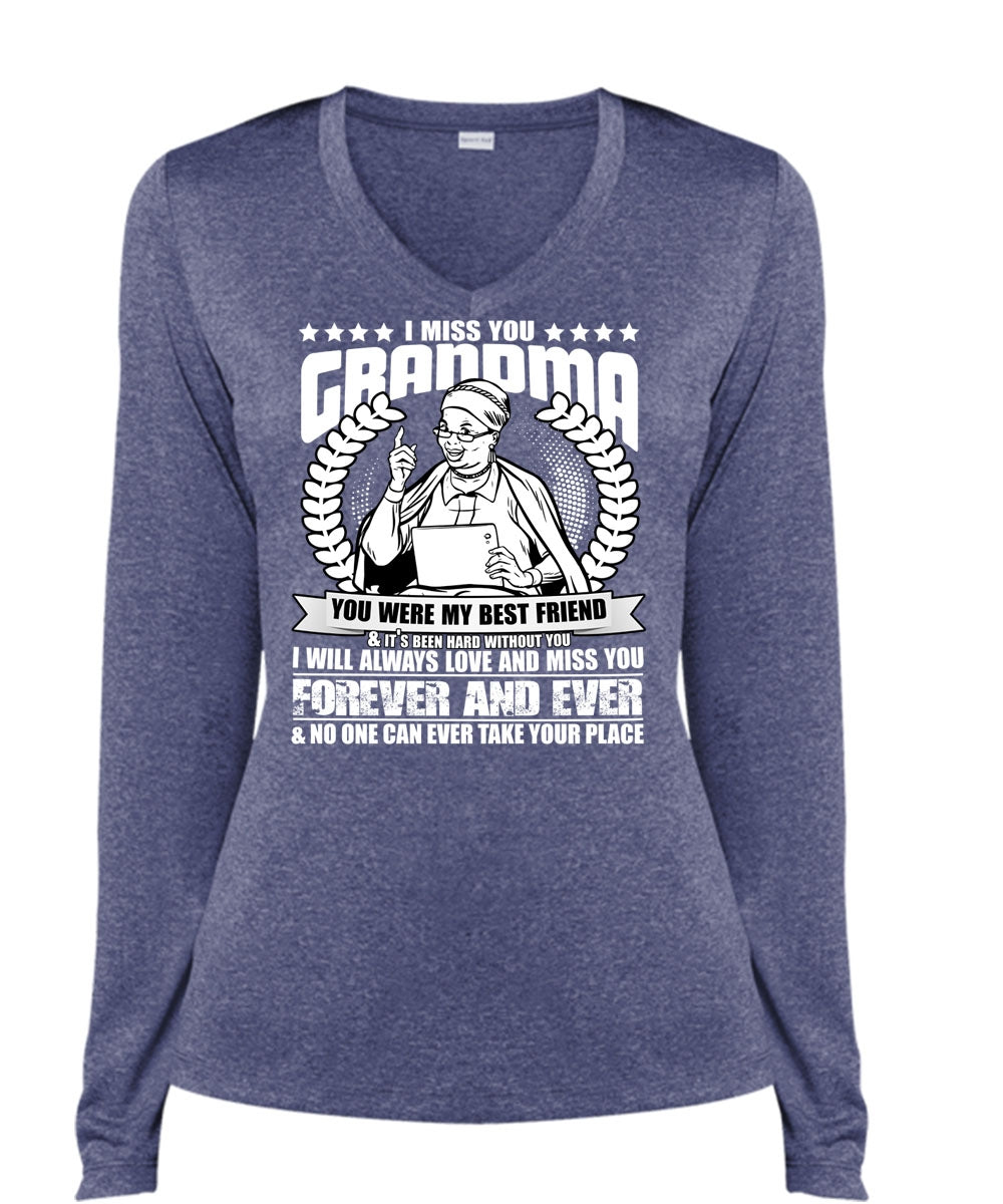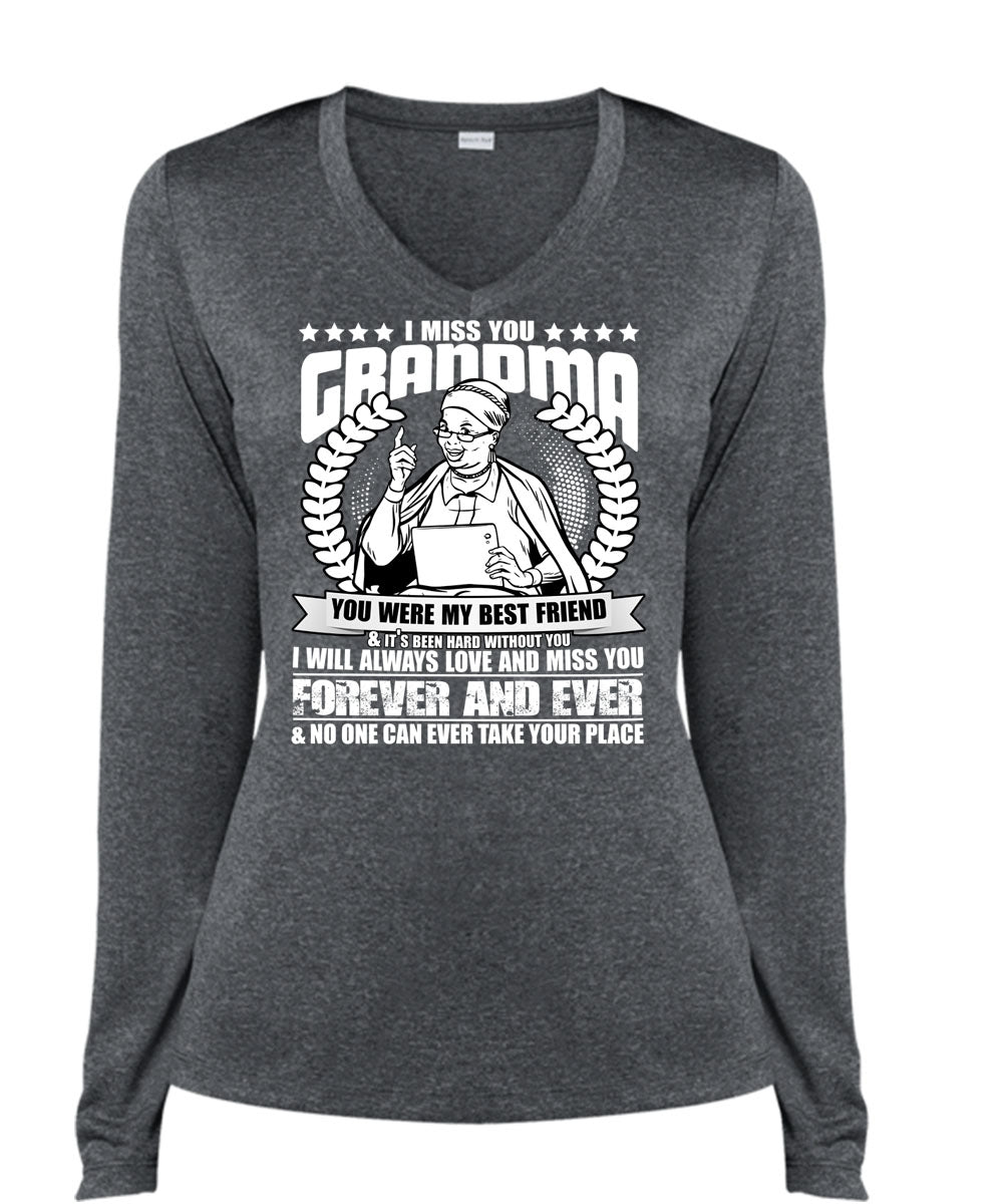 I Miss You Grandma T Shirt, Best Friend T Shirt, Cool Shirt (Ladies LS Heather V-Neck)