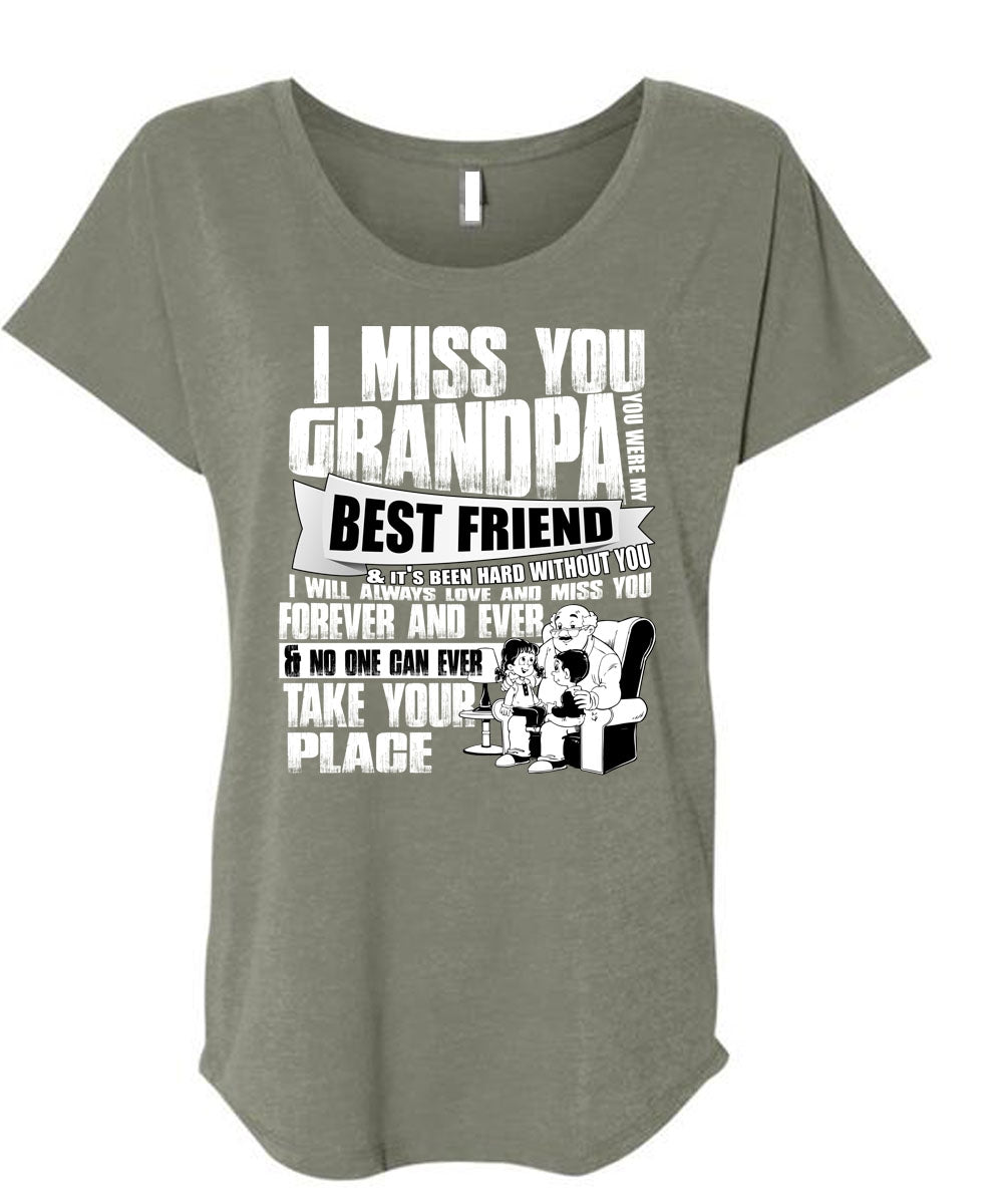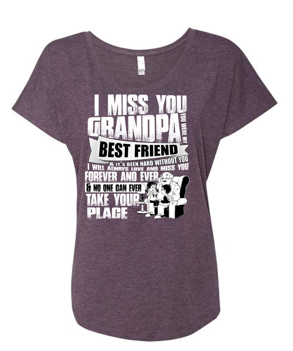 I Miss You Grandpa T Shirt, Best Friend T Shirt, Cool Shirt (Ladies' Triblend Dolman Sleeve)