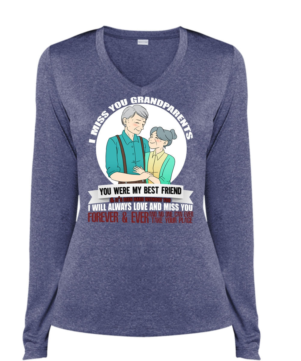 I Miss You Grandparents T Shirt, Best Friend T Shirt, Cool Shirt (Ladies LS Heather V-Neck)