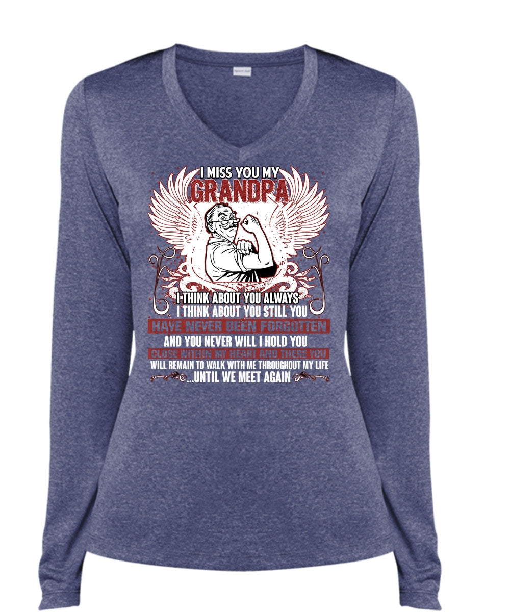 I Miss You My Grandpa T Shirt, Being A Grandpa T Shirt, Cool Shirt (Ladies LS Heather V-Neck)