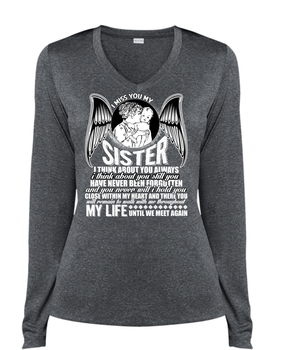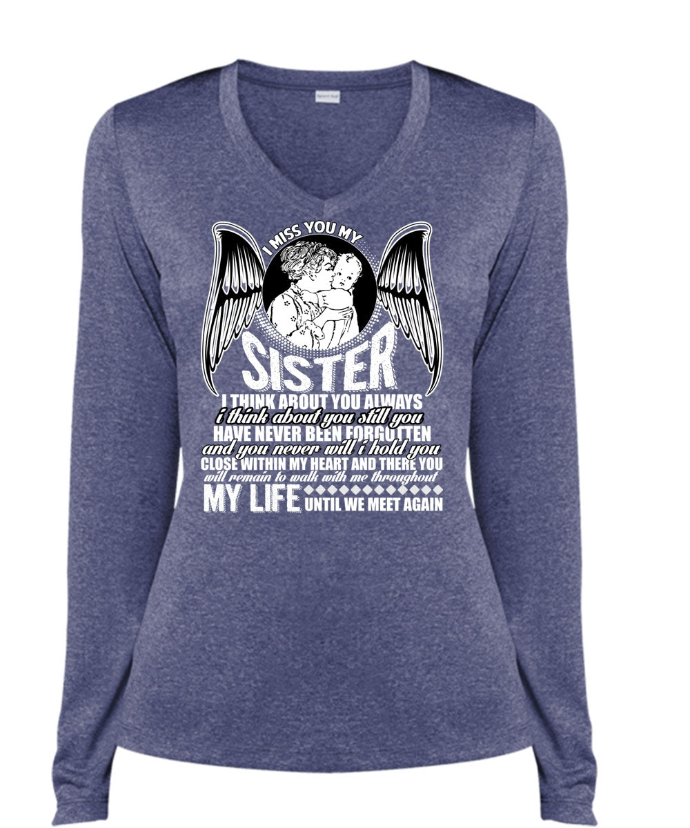 I Miss You My Sister T Shirt, Being A Sister T Shirt, Cool Shirt (Ladies LS Heather V-Neck)