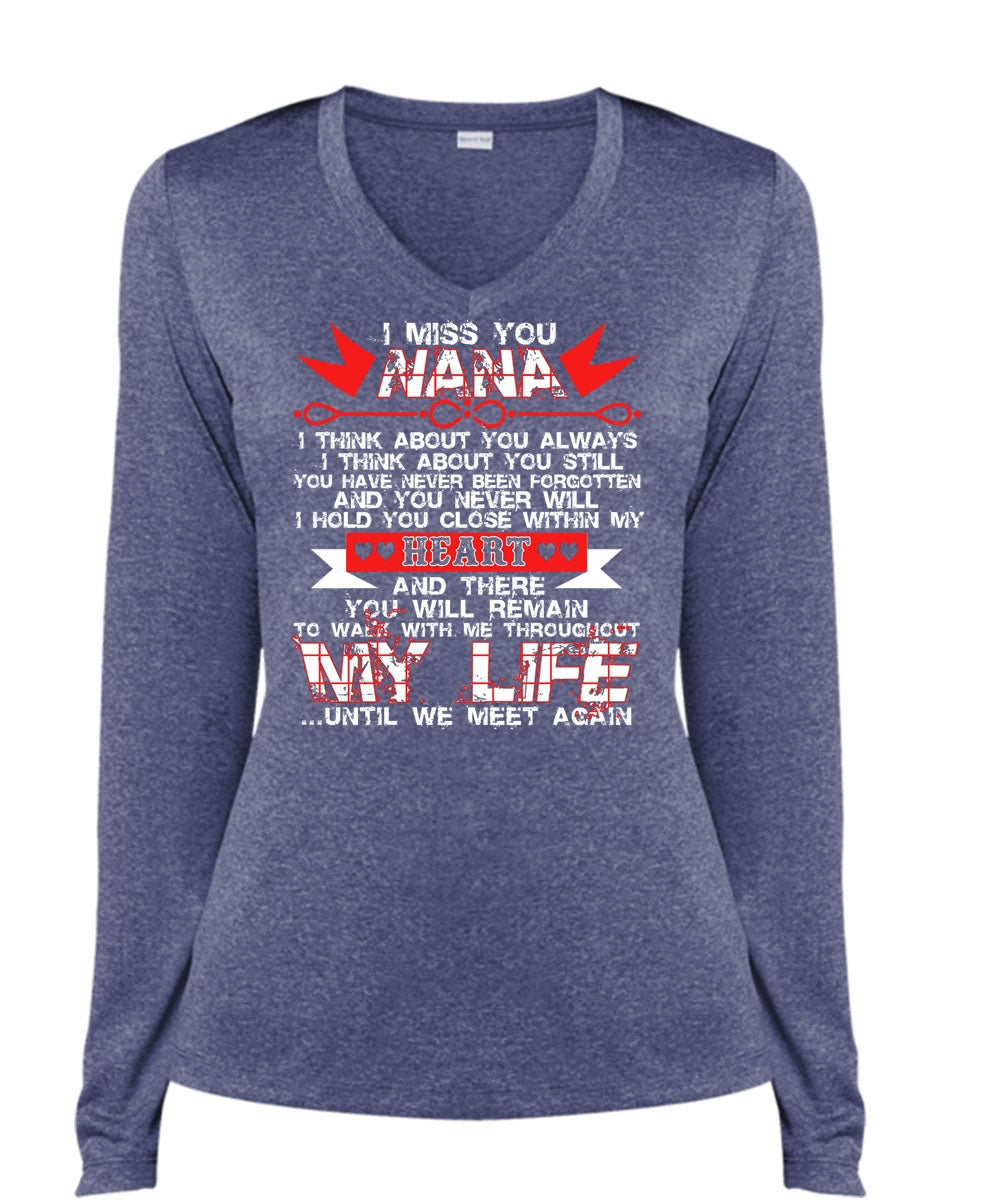 I Miss You Nana T Shirt, My Life T Shirt, Cool Shirt (Ladies LS Heather V-Neck)