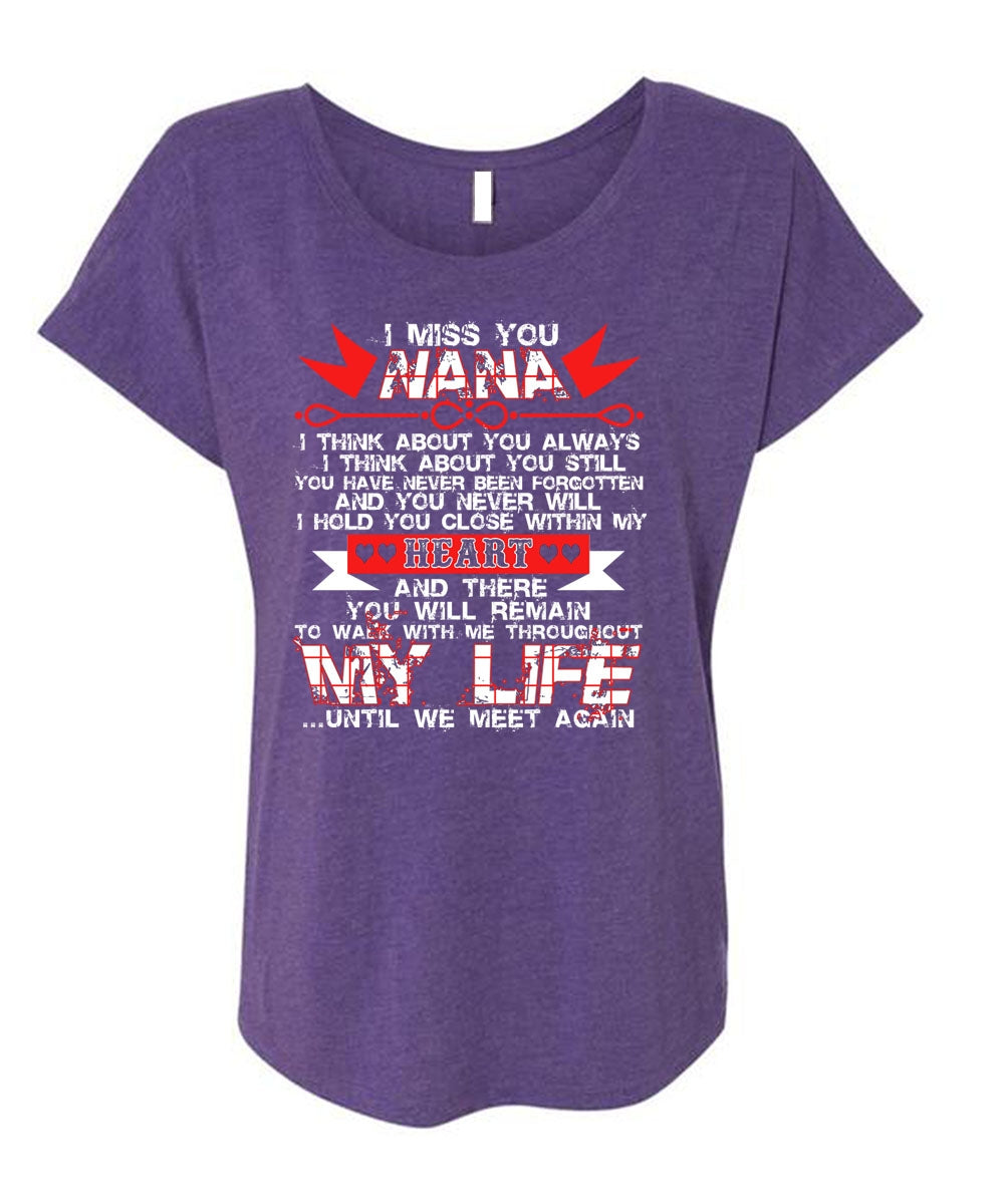 I Miss You Nana T Shirt, My Life T Shirt, Cool Shirt (Ladies' Triblend Dolman Sleeve)
