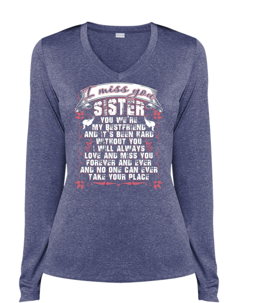 I Miss You Sister T Shirt, We're My Best Friend T Shirt, Cool Shirt (Ladies LS Heather V-Neck)