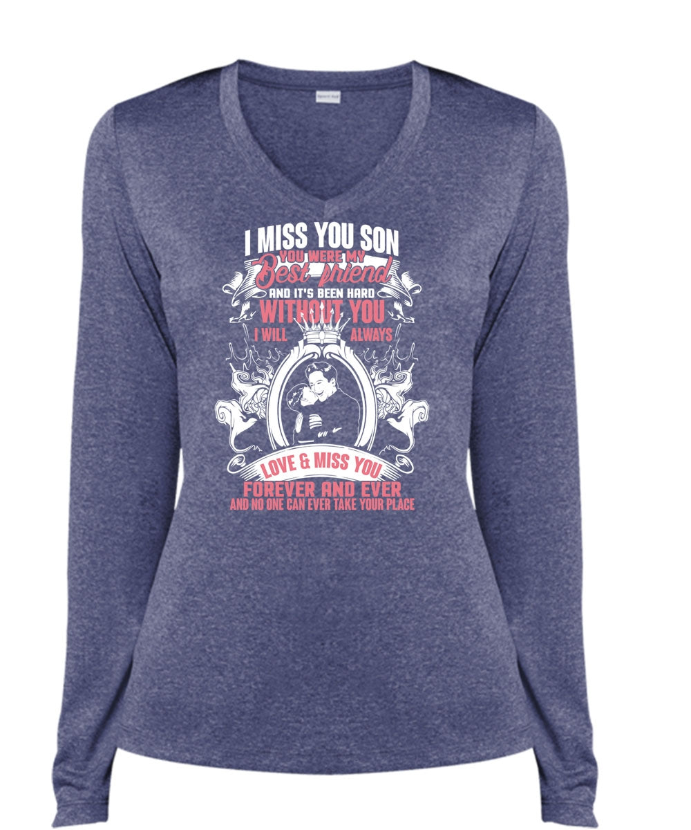 I Miss You Son T Shirt, My Best Friend T Shirt, Cool Shirt (Ladies LS Heather V-Neck)
