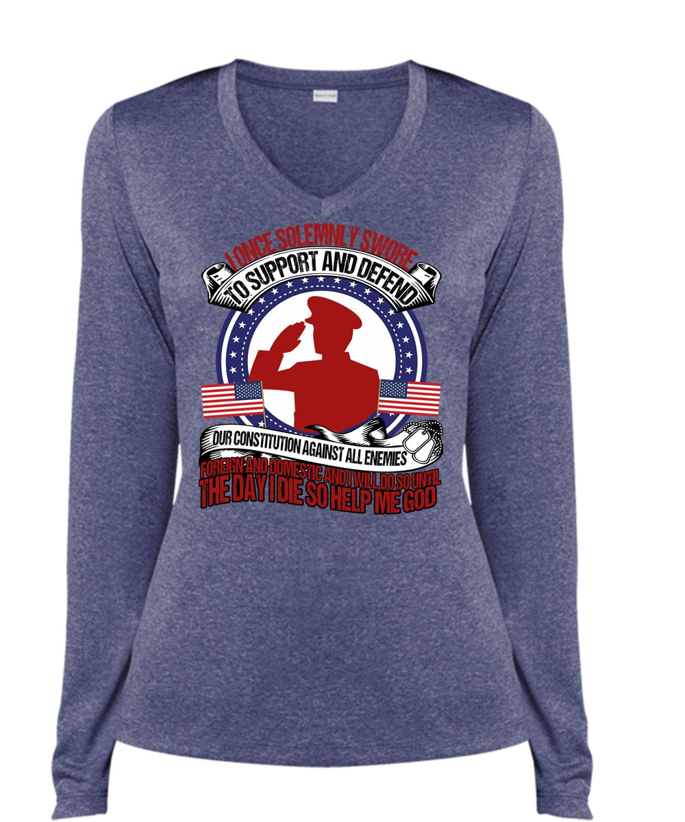 I Once Solemnly Swore T Shirt, Being A Veteran T Shirt, Cool Shirt (Ladies LS Heather V-Neck)