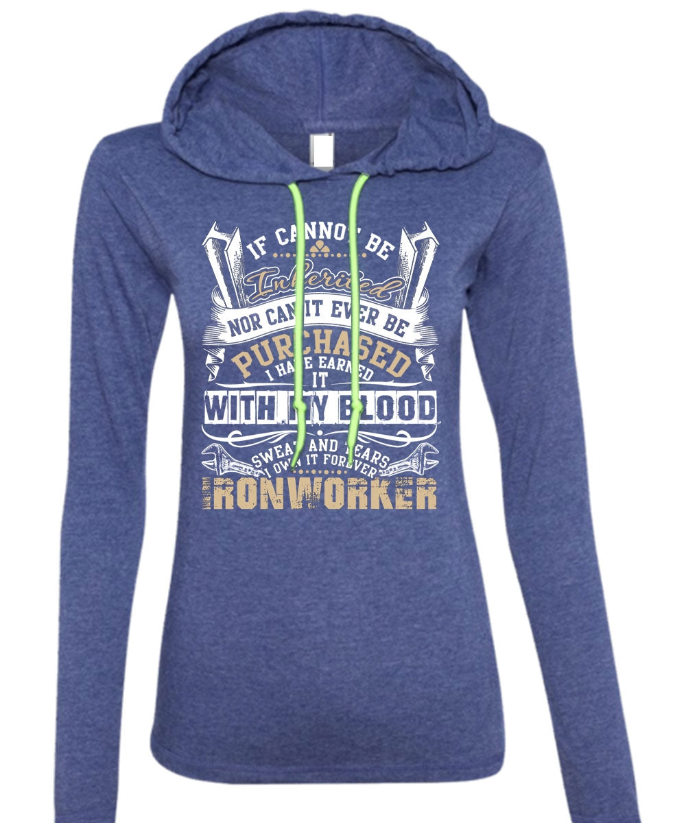 I Own It Forever Ironworker T Shirt, Sweat And Tears T Shirt (Anvil Ladies Ringspun Hooded)