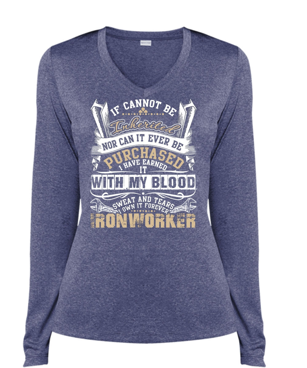 I Own It Forever Ironworker T Shirt, Sweat And Tears T Shirt, Cool Shirt (Ladies LS Heather V-Neck)