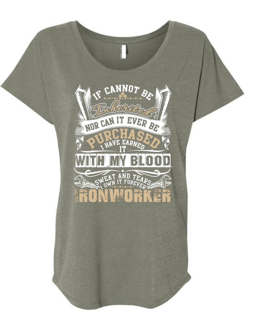 I Own It Forever Ironworker T Shirt, Sweat And Tears T Shirt, Cool Shirt (Ladies' Triblend Dolman Sleeve)