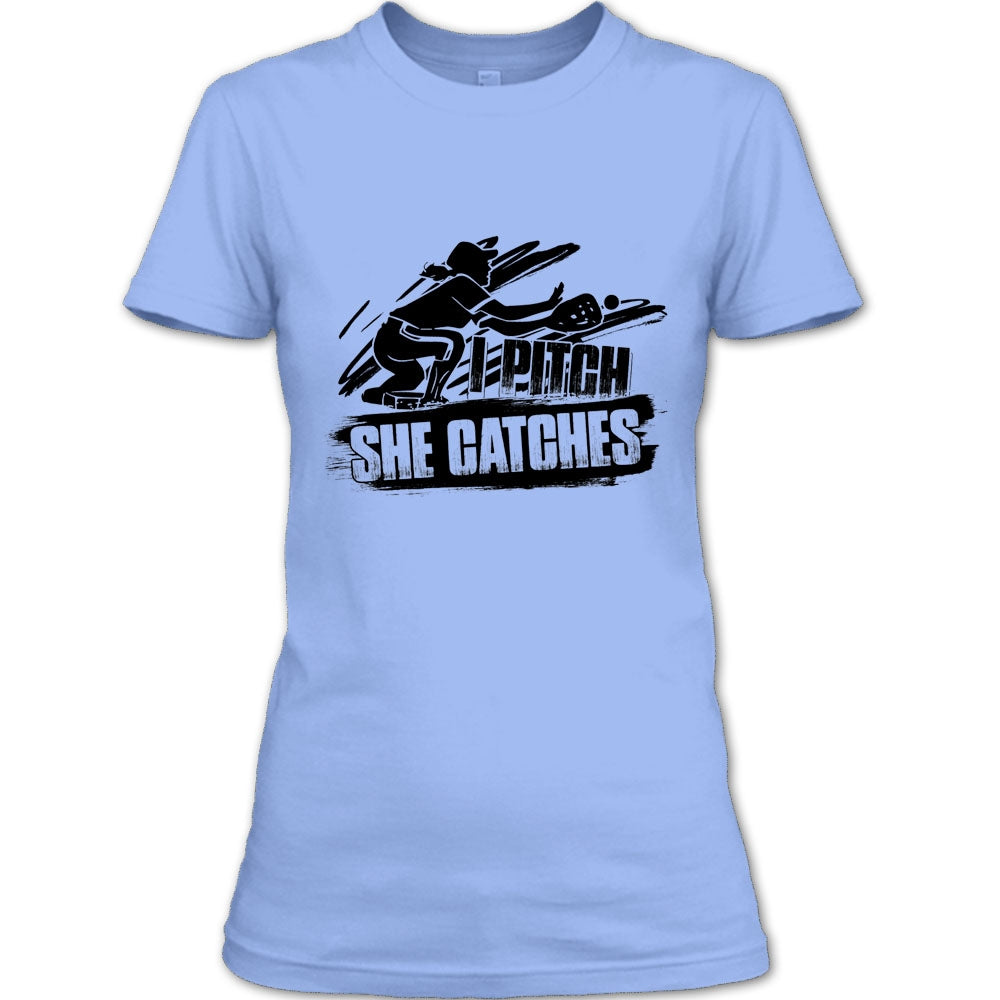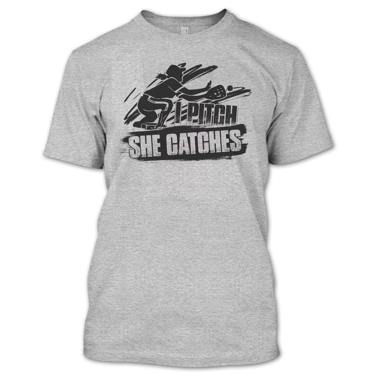 I Pitch She Catches T Shirt, Gift For Baseball Player T Shirt