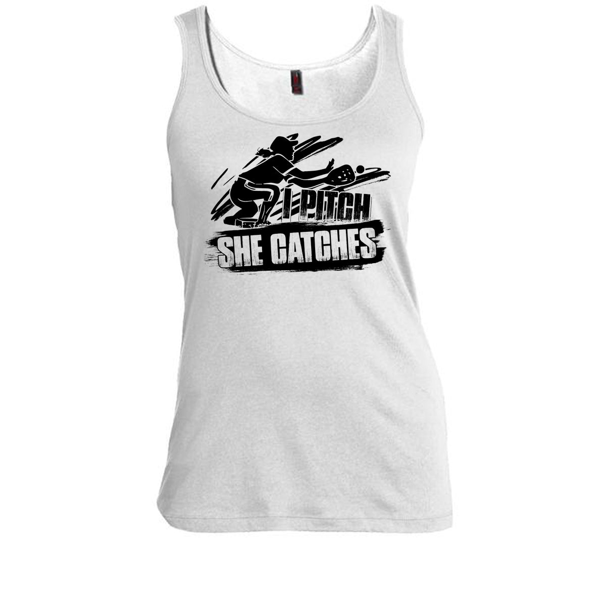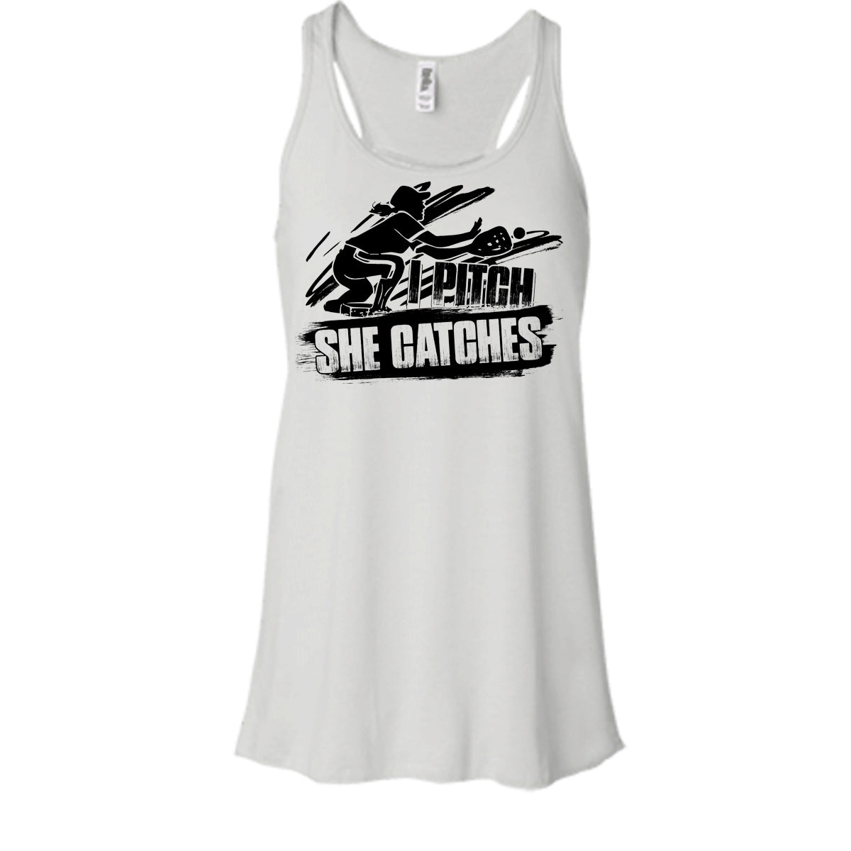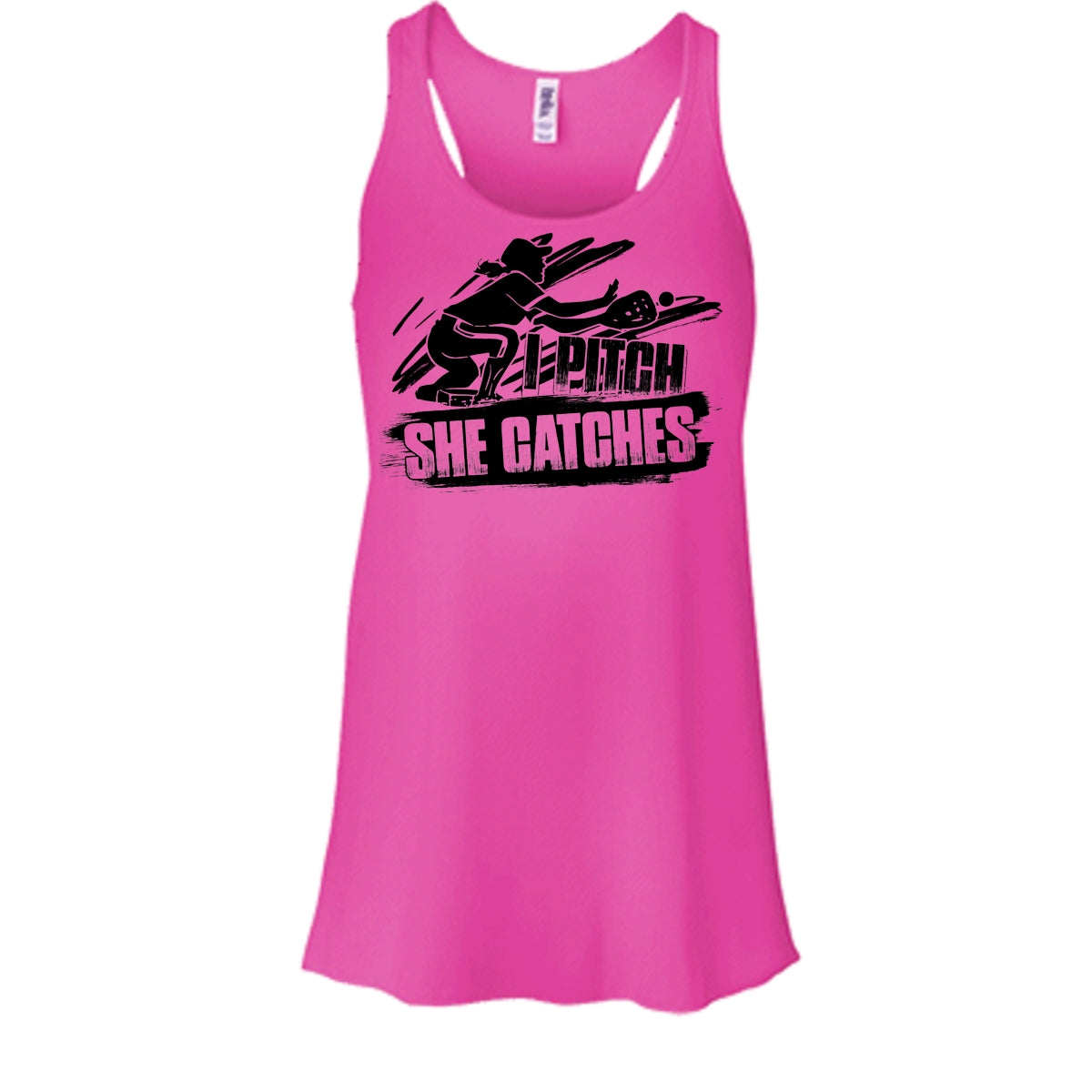 I Pitch She Catches T Shirt, Gift For Baseball Player Tank Top