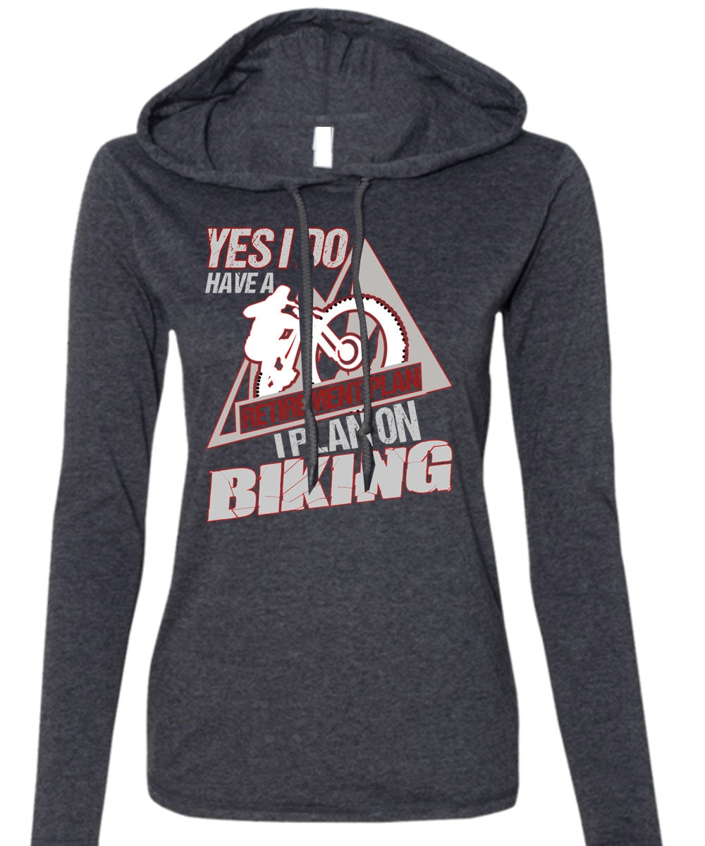 I Plan On Biking T Shirt, Retirement Plan T Shirt (Anvil Ladies Ringspun Hooded)