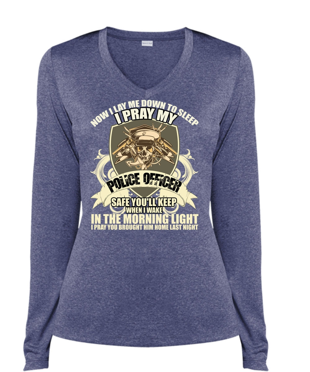I Pray My Police Officer T Shirt, The Morning Light T Shirt, Cool Shirt (Ladies LS Heather V-Neck)