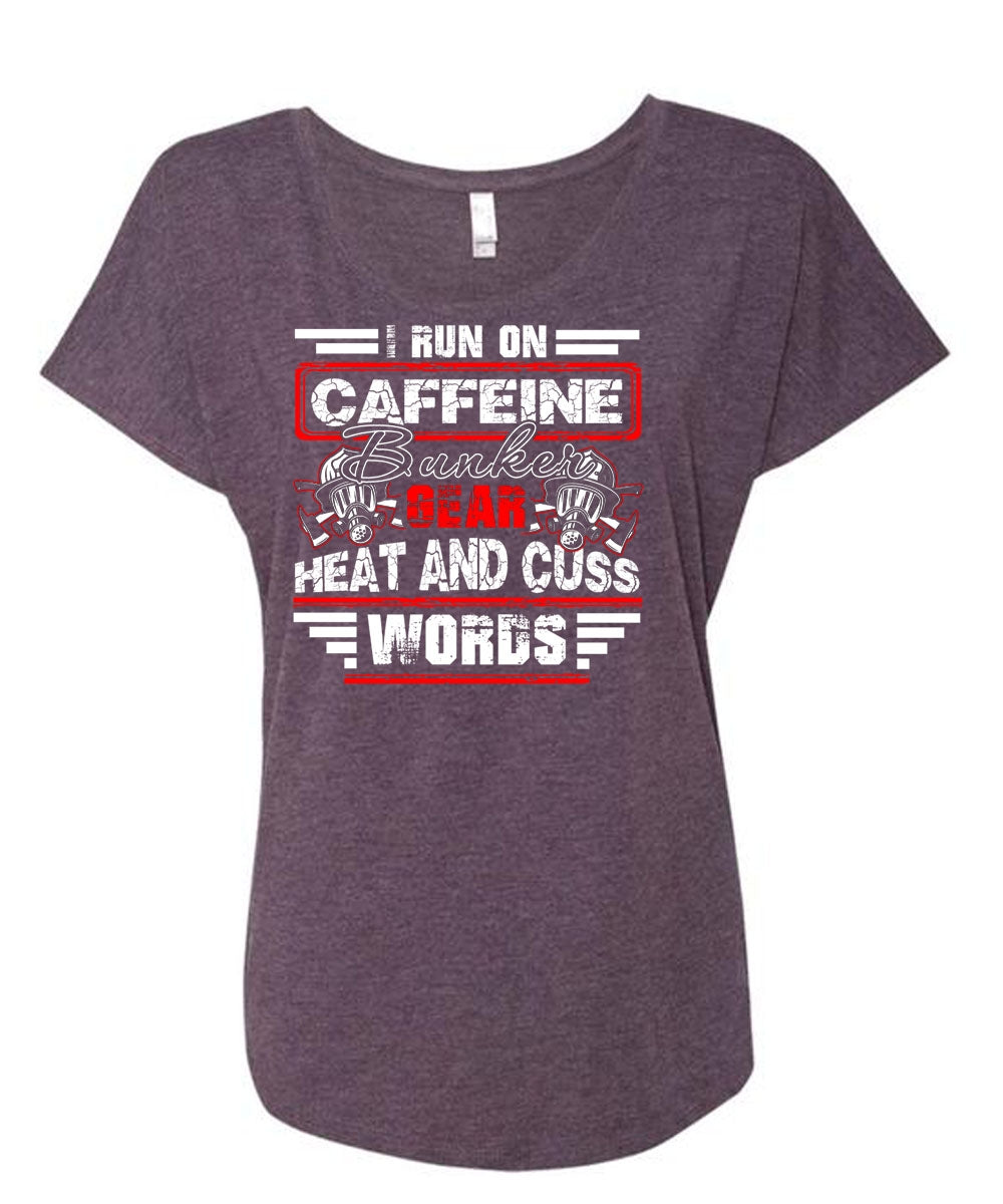 I Run Caffeine Bunker T Shirt, Being A Firefighter T Shirt, Cool Shirt (Ladies' Triblend Dolman Sleeve)