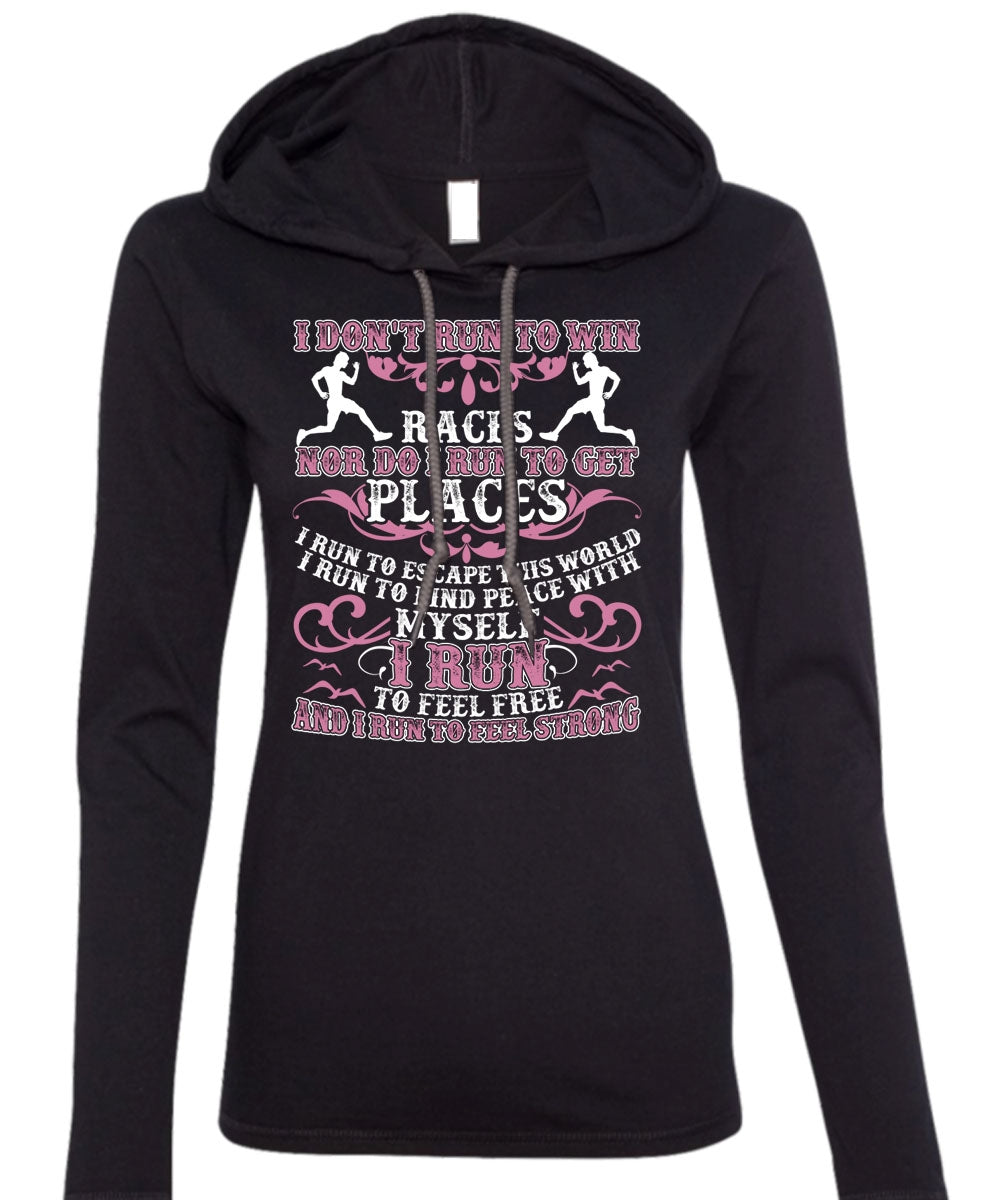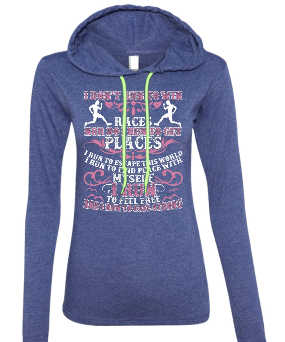 I Run To Feel Free T Shirt, I Run To Feel Strong T Shirt (Anvil Ladies Ringspun Hooded)
