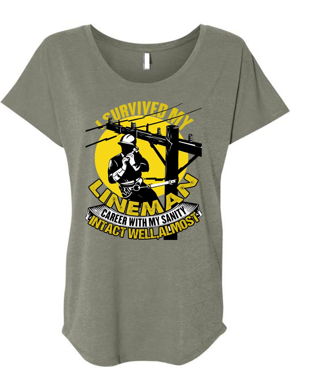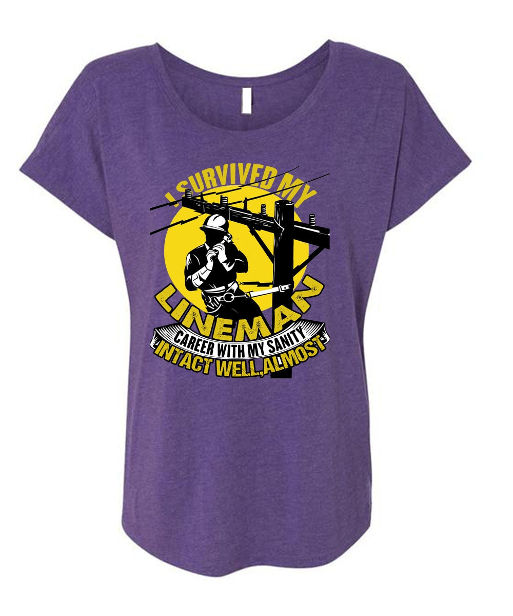 I Survived My Lineman T Shirt, I Love Lineman T Shirt, Cool Shirt (Ladies' Triblend Dolman Sleeve)