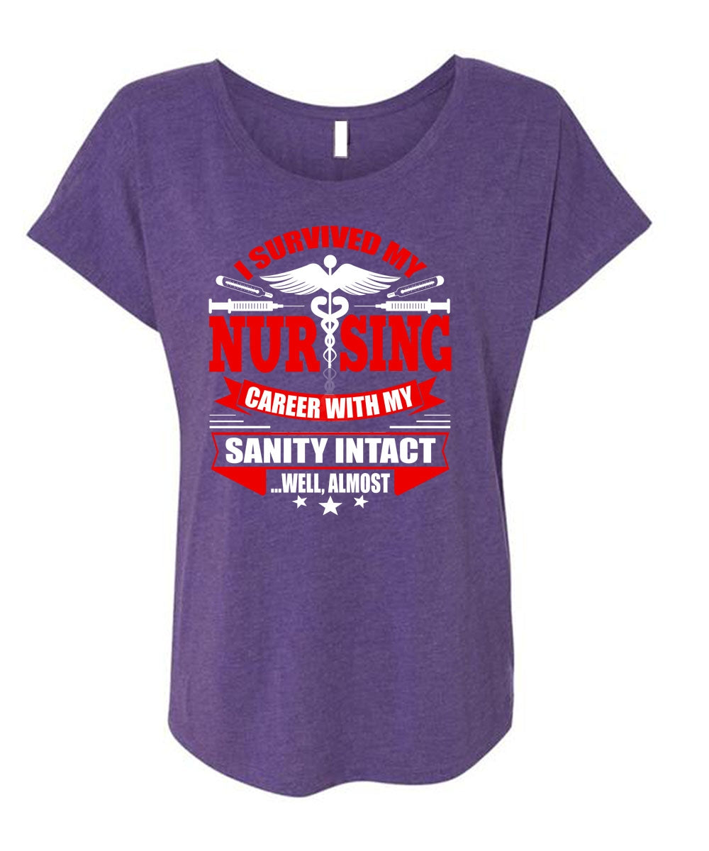 I Survived My Nursing T Shirt, Being A Nurse T Shirt, Cool Shirt (Ladies' Triblend Dolman Sleeve)