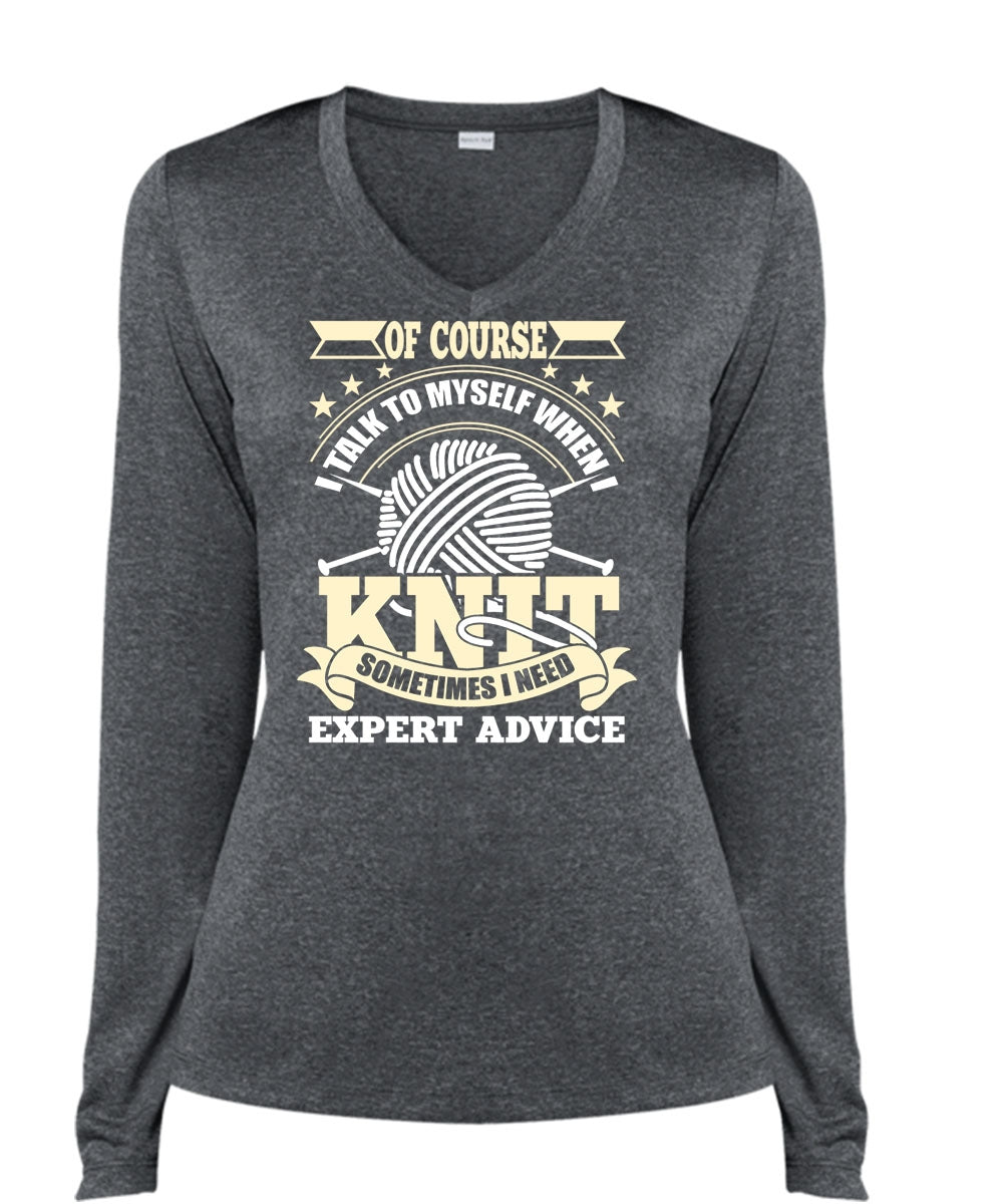 I Talk To Myself When I Knit T Shirt, I Need Expert Advice T Shirt, Cool Shirt (Ladies LS Heather V-Neck)