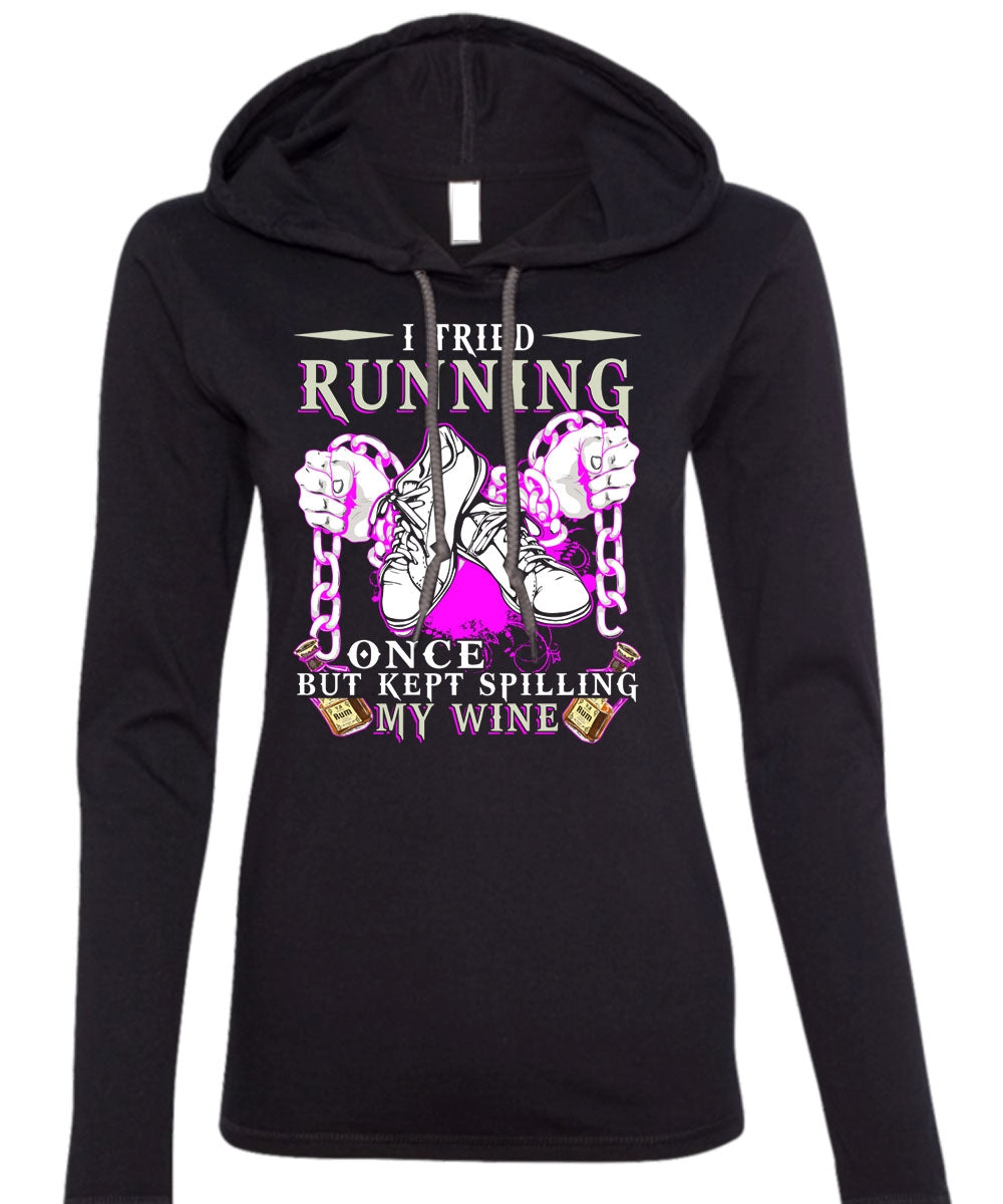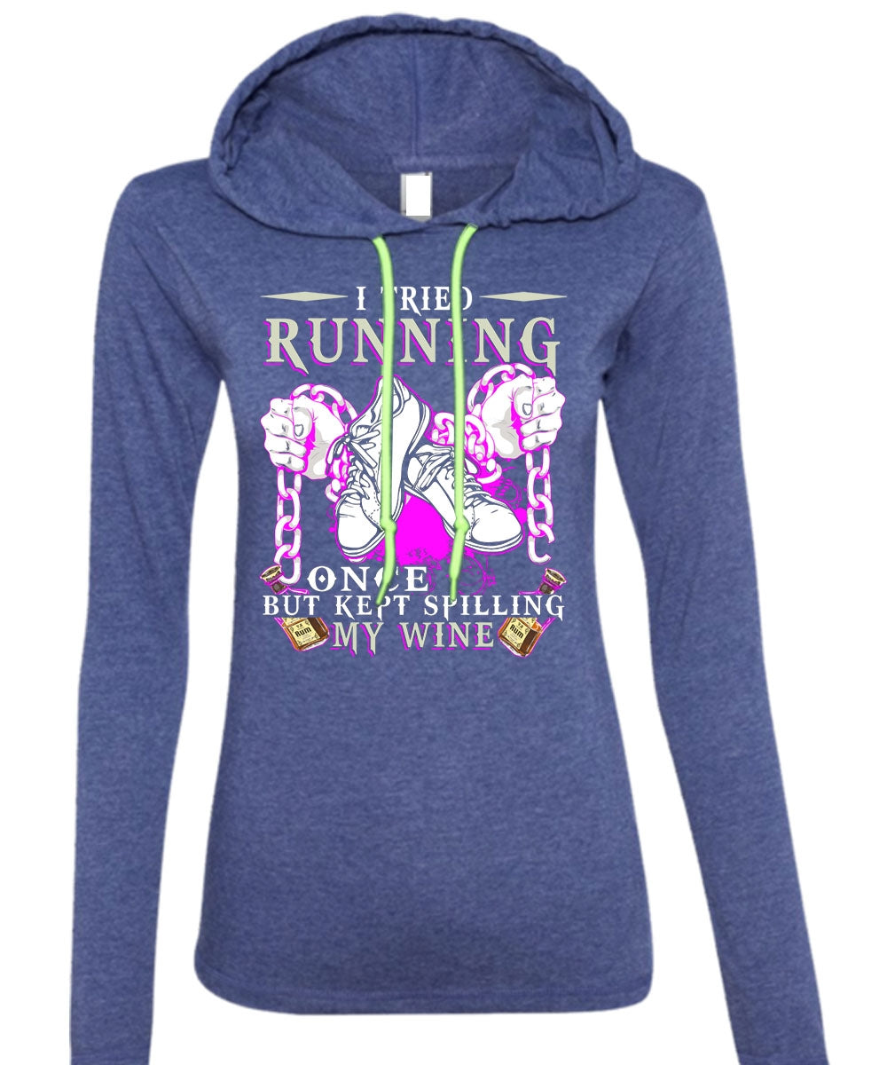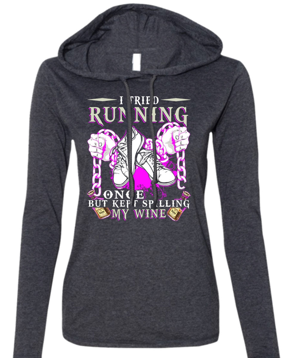 I Tried Running T Shirt, Kept Spilling My Wine T Shirt (Anvil Ladies Ringspun Hooded)