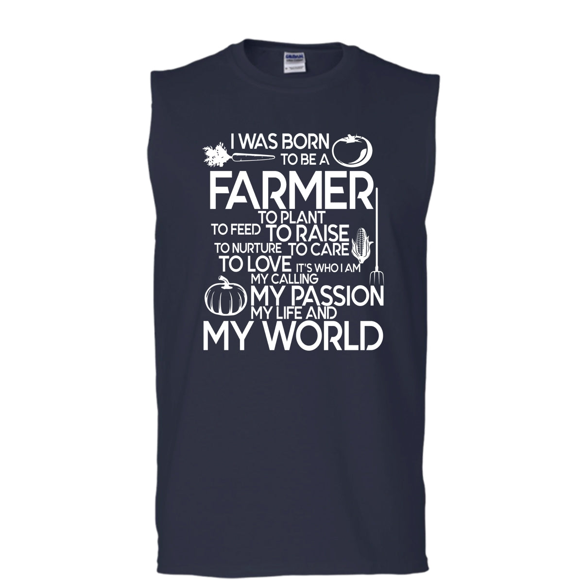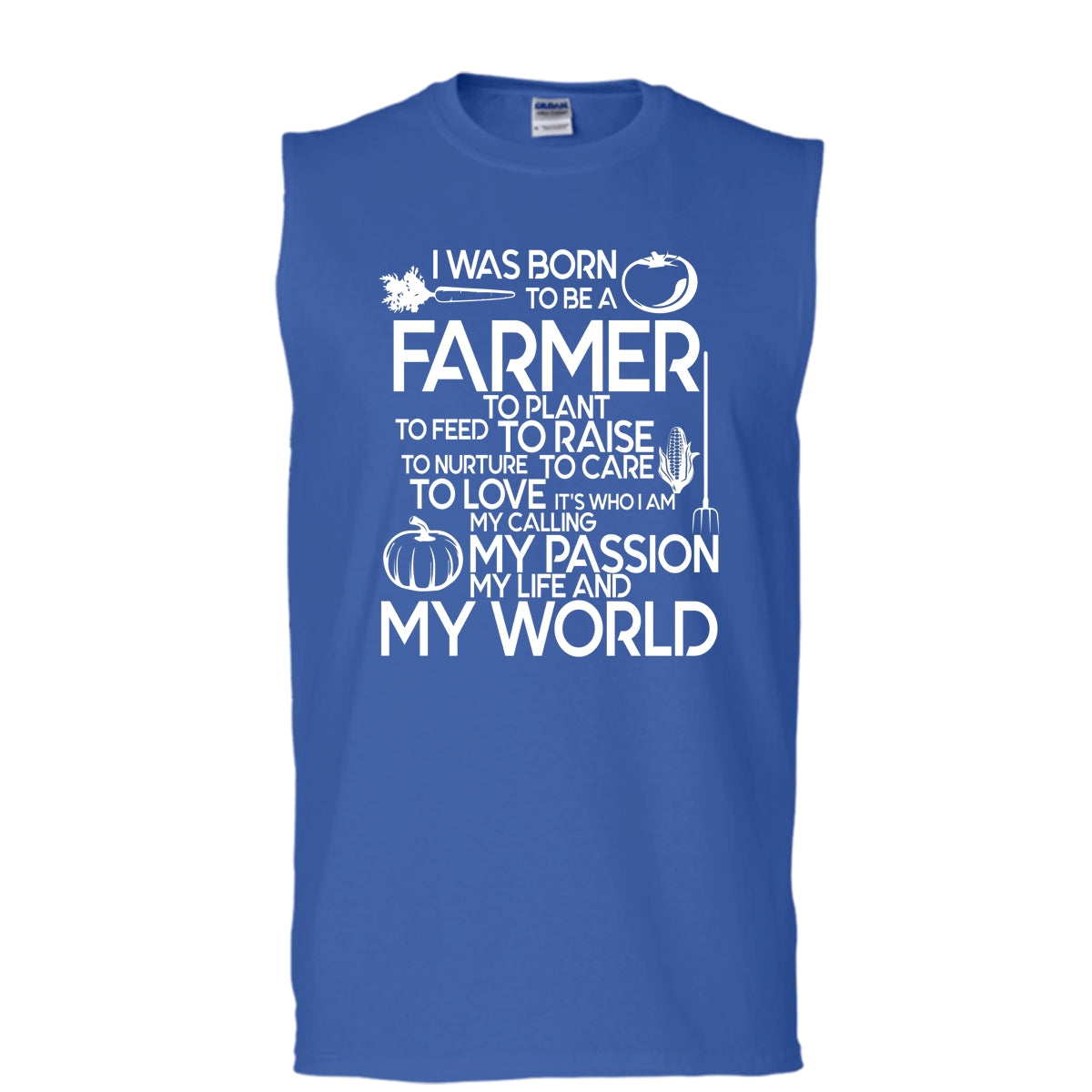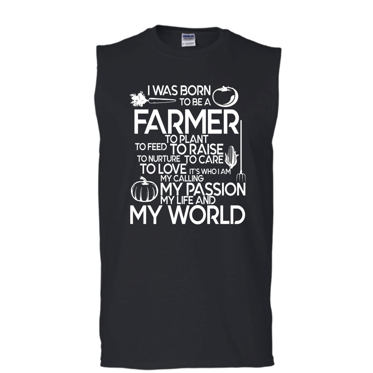 I Was Born To Be A Farmer T Shirt, My Life And My World T Shirt, Cool T Shirt (Men's Cotton Sleeveless)