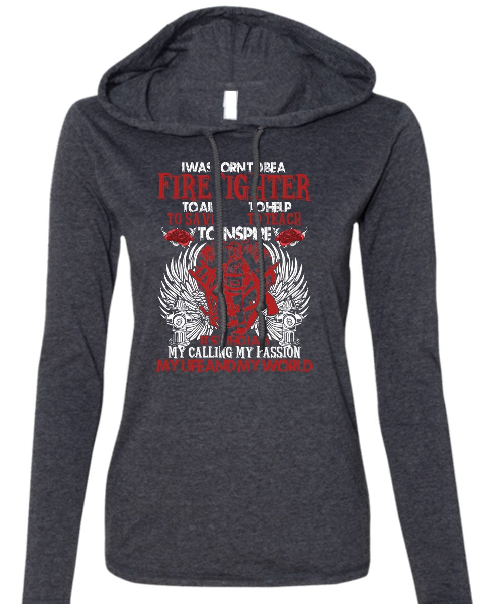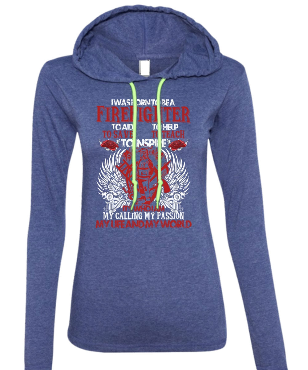 I Was Born To Be A Firefighter T Shirt, My Life And My World T Shirt (Anvil Ladies Ringspun Hooded)