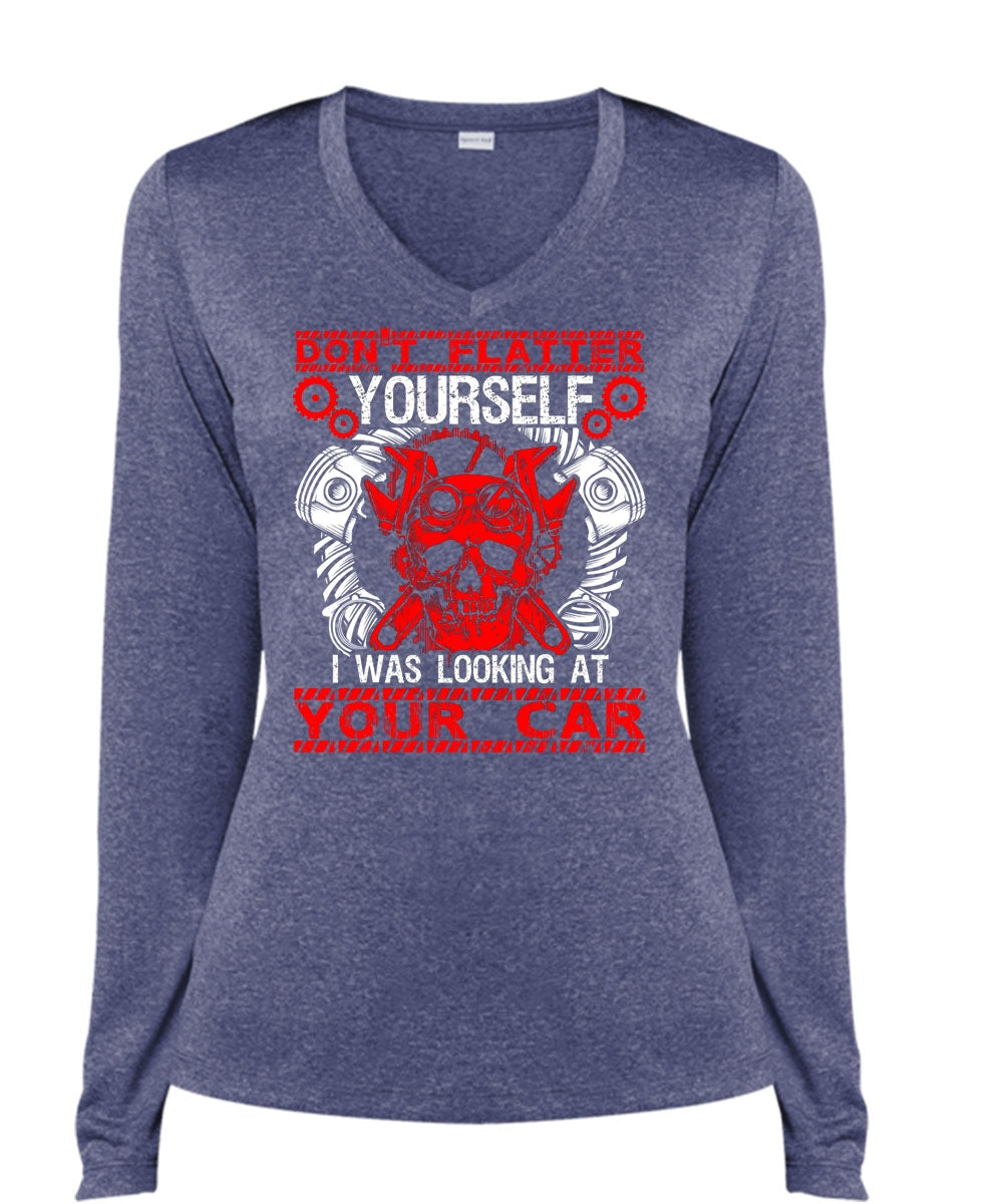 I Was Looking At Your Car T Shirt, Being A Mechanic T Shirt, Cool Shirt (Ladies LS Heather V-Neck)