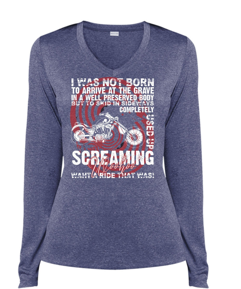 I Was Not Born To Arrive T Shirt, Being A Biker T Shirt, Cool Shirt (Ladies LS Heather V-Neck)