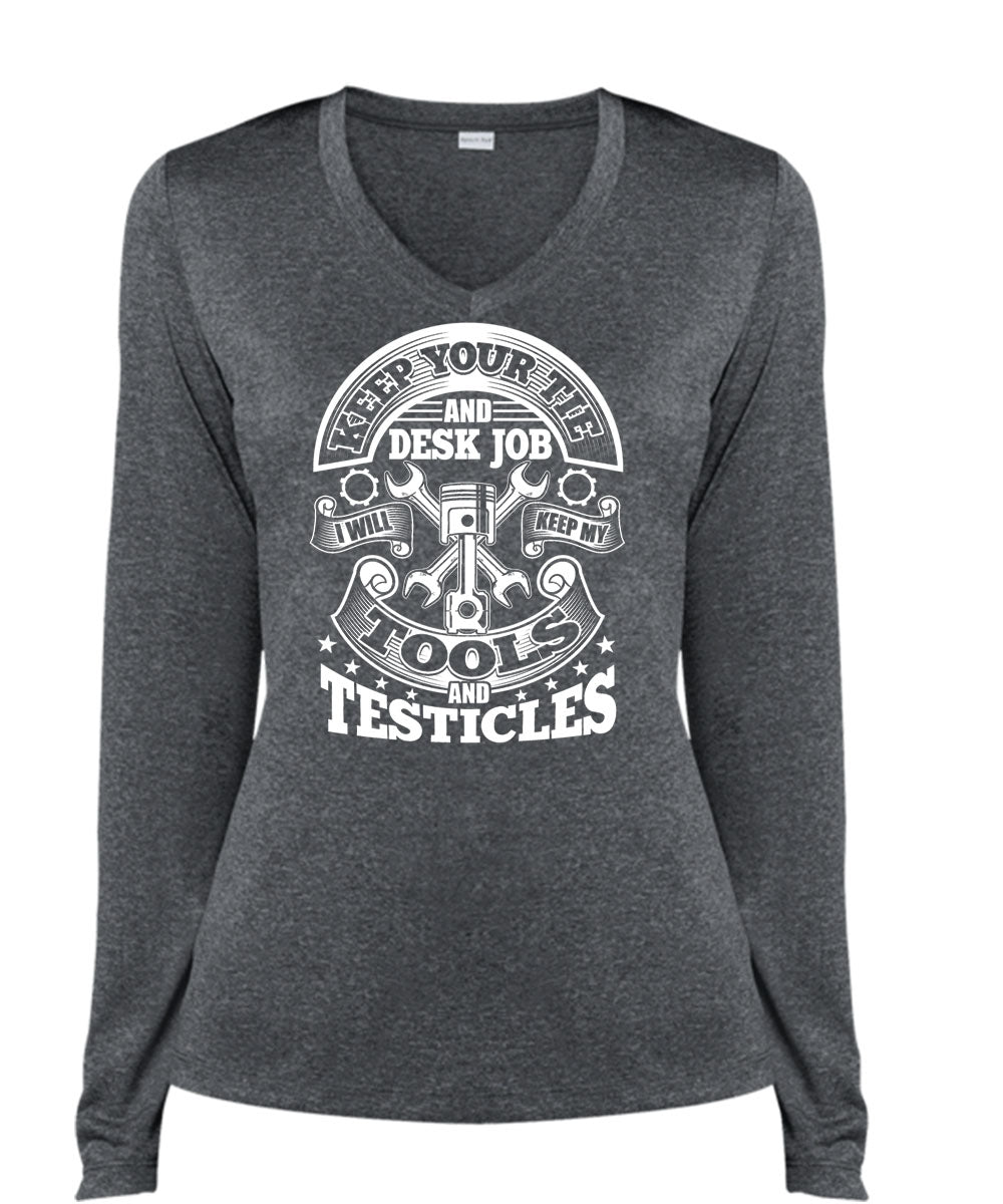 I Will Keep My Tools T Shirt, Being A Machinist T Shirt, Cool Shirt (Ladies LS Heather V-Neck)