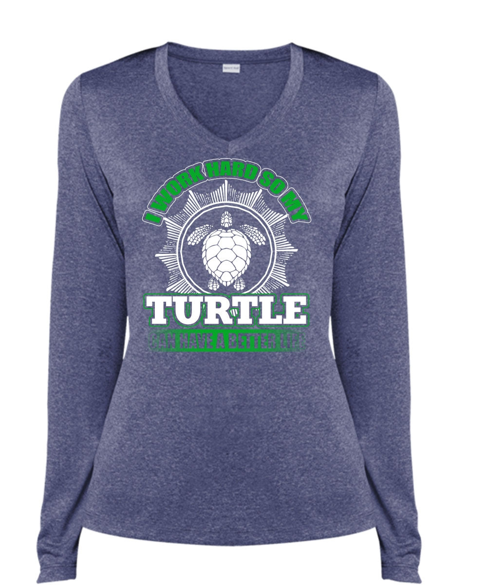 I Work Hard So My Turtle T Shirt, My Life T Shirt, Cool Shirt (Ladies LS Heather V-Neck)