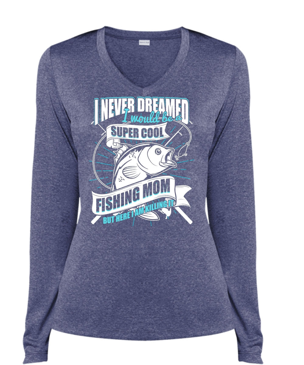 I Would Be A Cool Fishing Mom T Shirt, Being A Fisher T Shirt, Cool Shirt (Ladies LS Heather V-Neck)