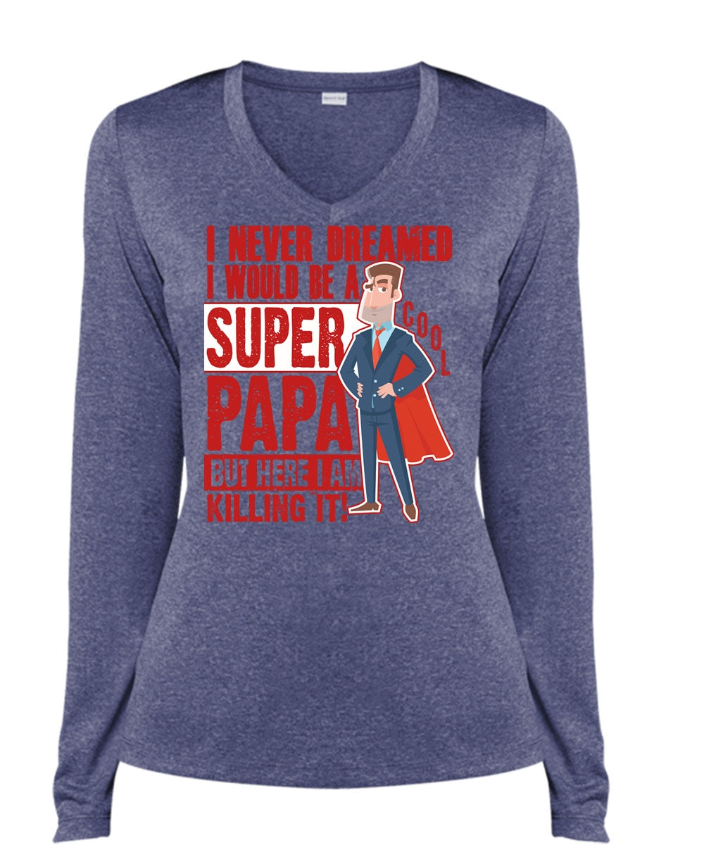 I Would Be A Cool Papa T Shirt, I Never Dreamed T Shirt, Cool Shirt (Ladies LS Heather V-Neck)