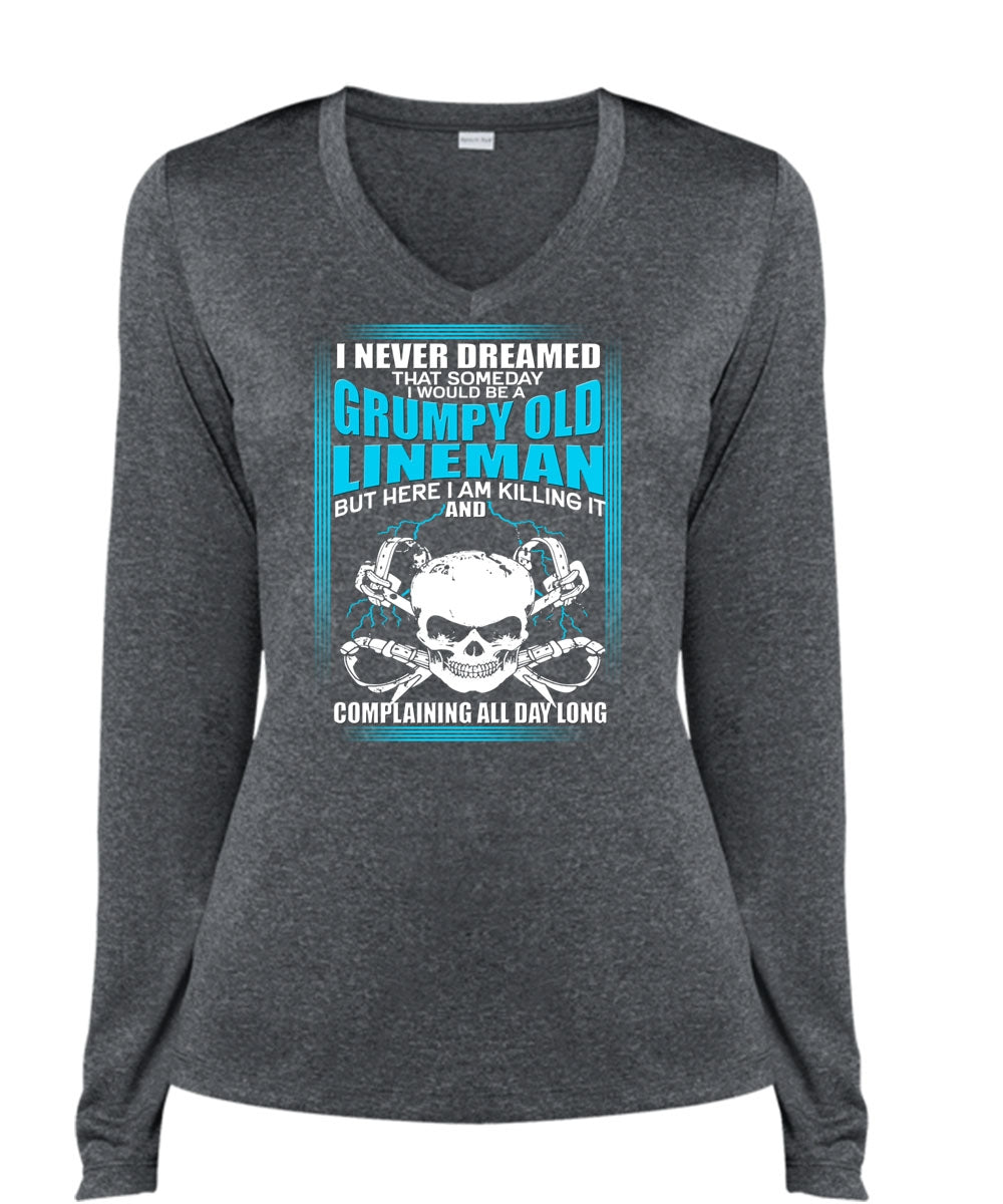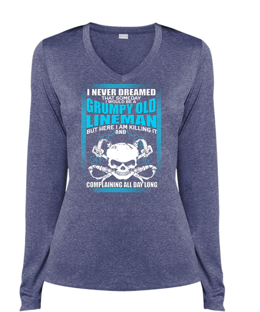 I Would Be A Grumpy Old Lineman T Shirt, I Never Dreamed T Shirt, Cool Shirt (Ladies LS Heather V-Neck)