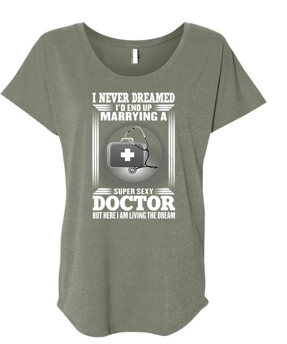 I'd Enf Up Marrying A Doctor T Shirt, I Never Dreamed T Shirt, Cool Shirt (Ladies' Triblend Dolman Sleeve)