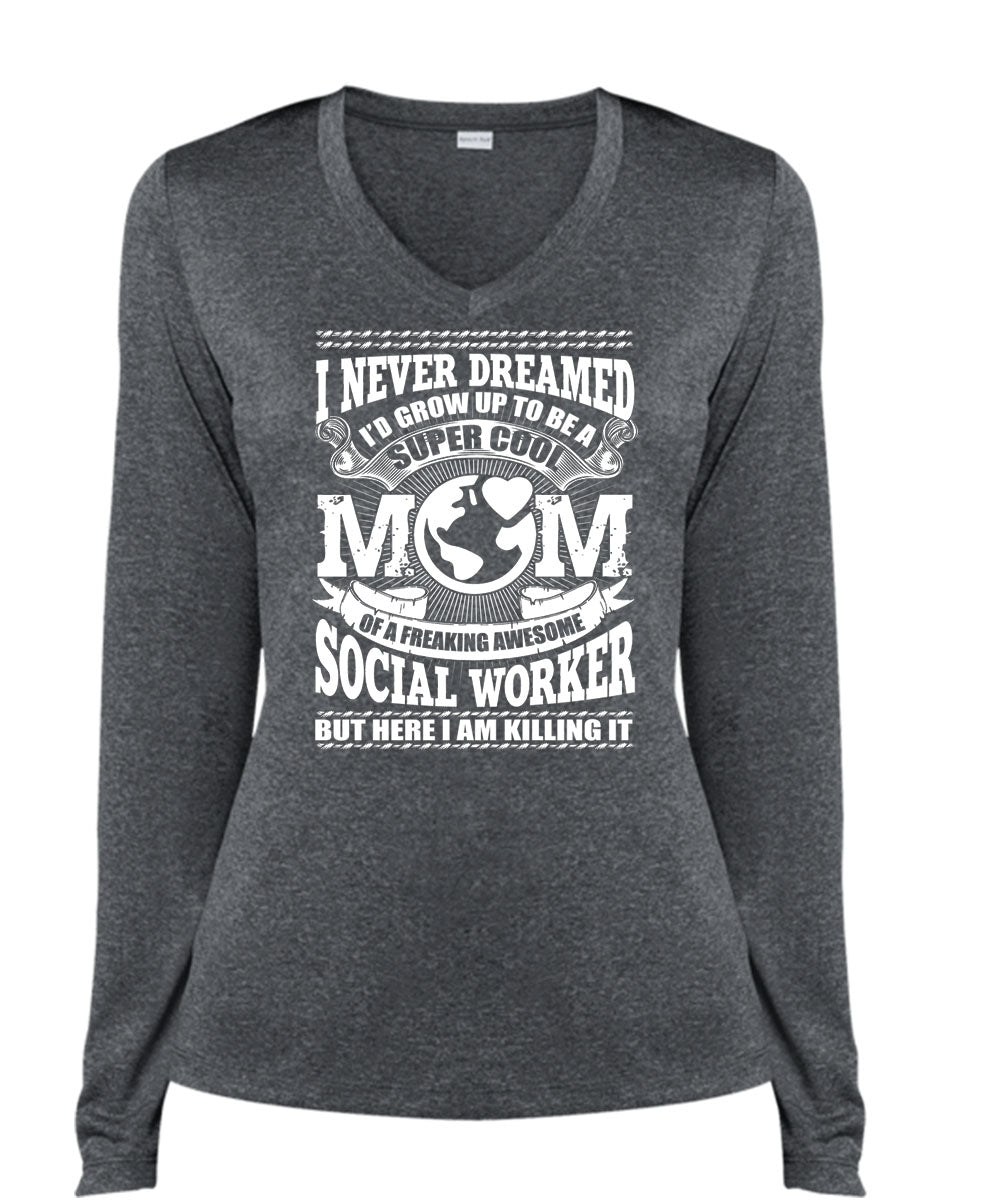 I'd Grow Up To Be A Cool Mom T Shirt, Being A Mom T Shirt, Cool Shirt (Ladies LS Heather V-Neck)
