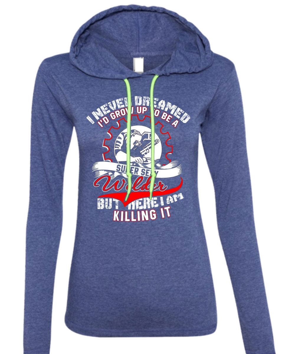 I'd Grow Up To Be A Welder T Shirt, I Never Dreamed T Shirt (Anvil Ladies Ringspun Hooded)