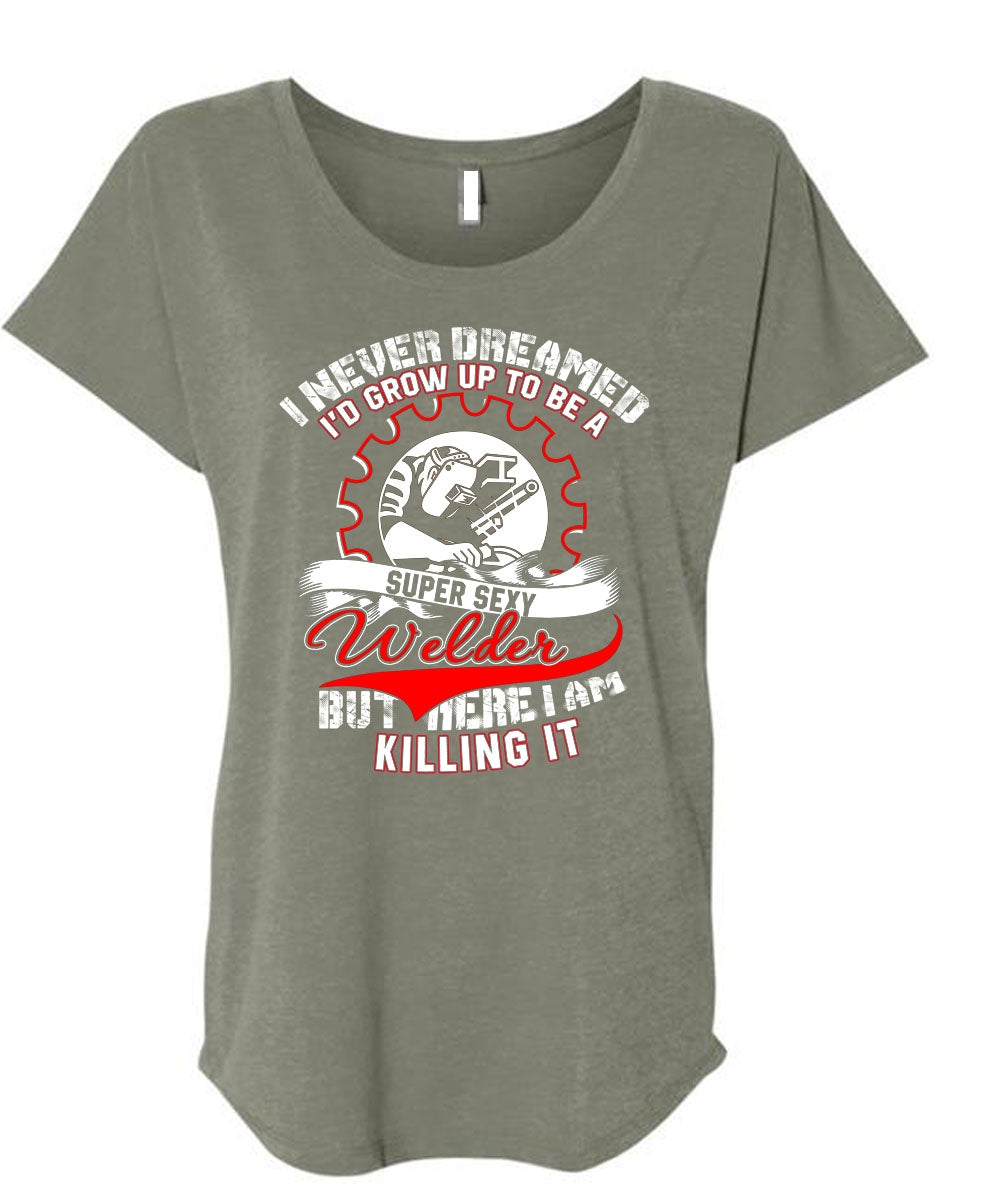 I'd Grow Up To Be A Welder T Shirt, I Never Dreamed T Shirt, Cool Shirt (Ladies' Triblend Dolman Sleeve)