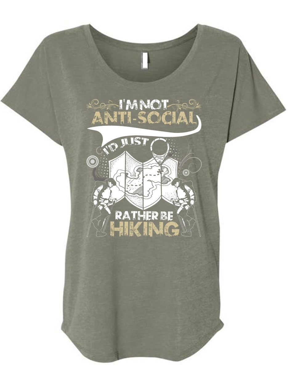 I'd Just Rather Be Hiking T Shirt, I'm Not Anti-Social T Shirt, Cool Shirt (Ladies' Triblend Dolman Sleeve)