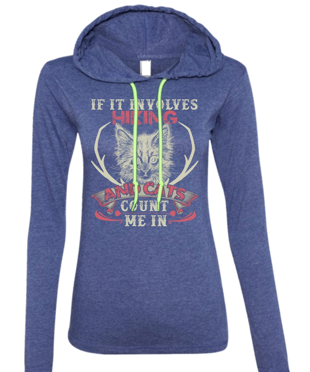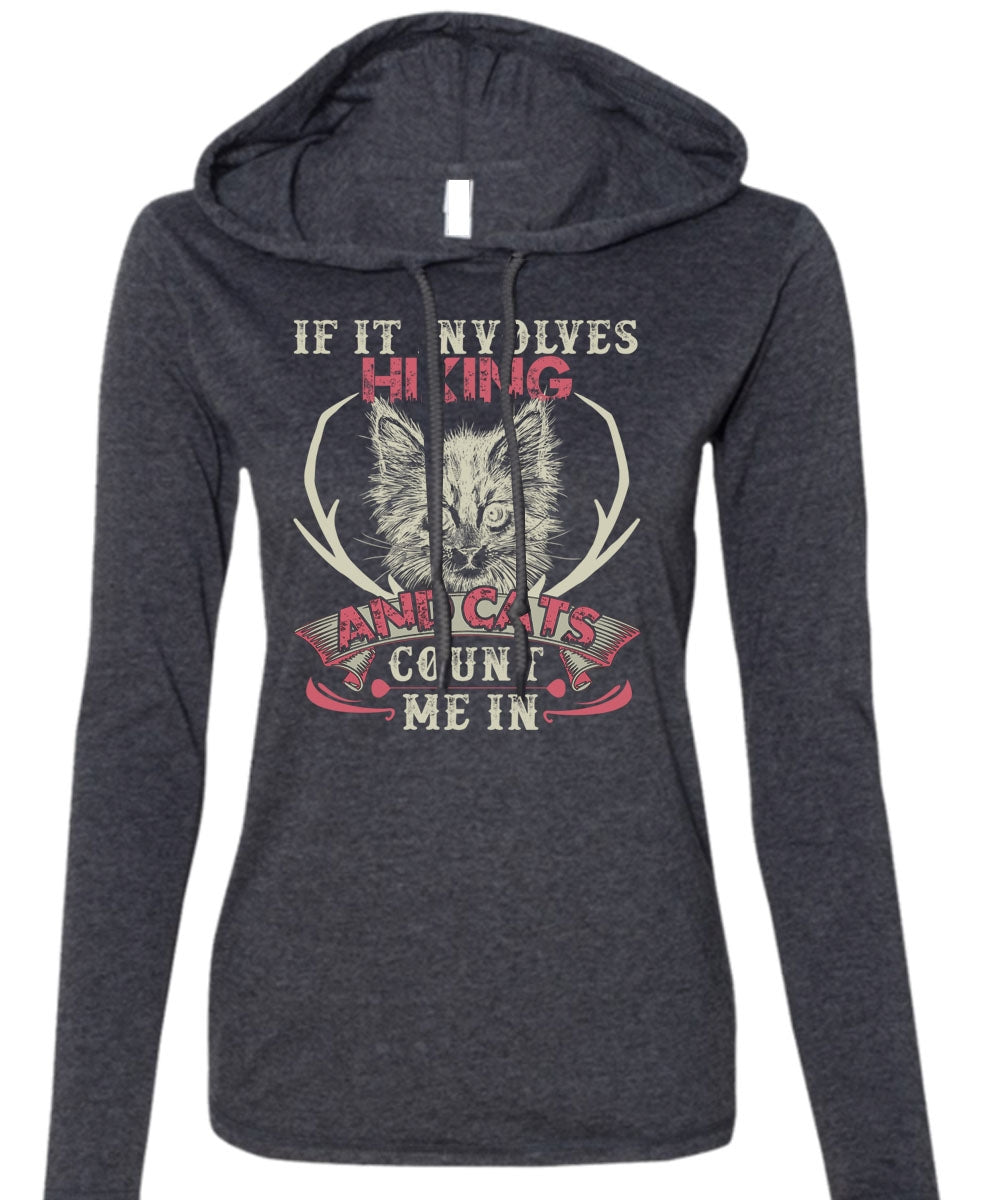 If It Involves Hiking T Shirt, Cats Count Me In T Shirt (Anvil Ladies Ringspun Hooded)