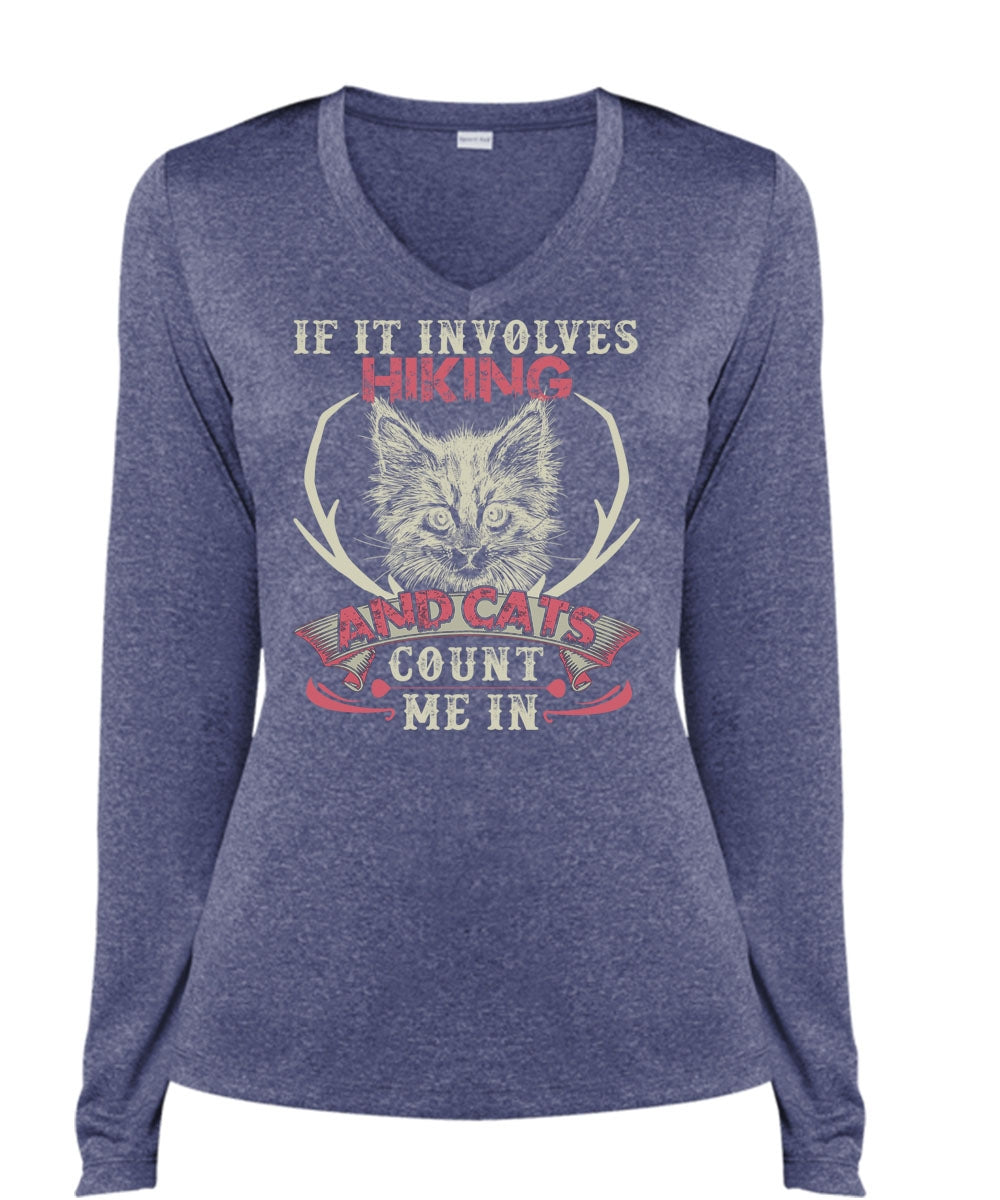 If It Involves Hiking T Shirt, Cats Count Me In T Shirt, Cool Shirt (Ladies LS Heather V-Neck)