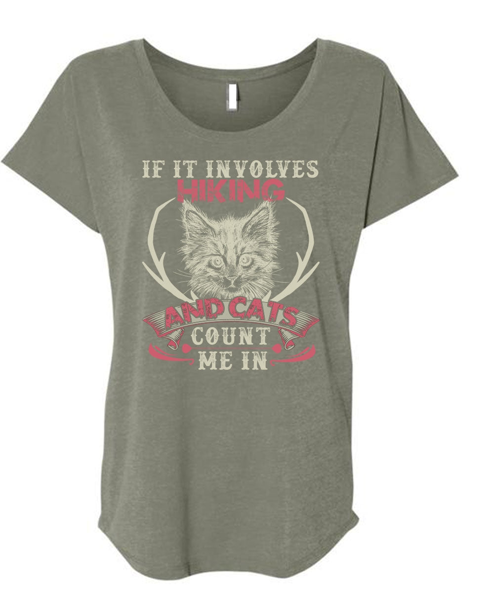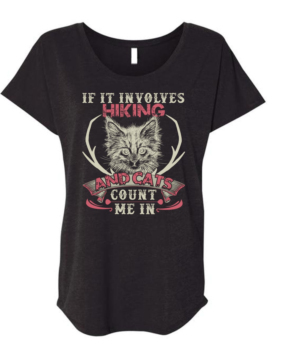 If It Involves Hiking T Shirt, Cats Count Me In T Shirt, Cool Shirt (Ladies' Triblend Dolman Sleeve)