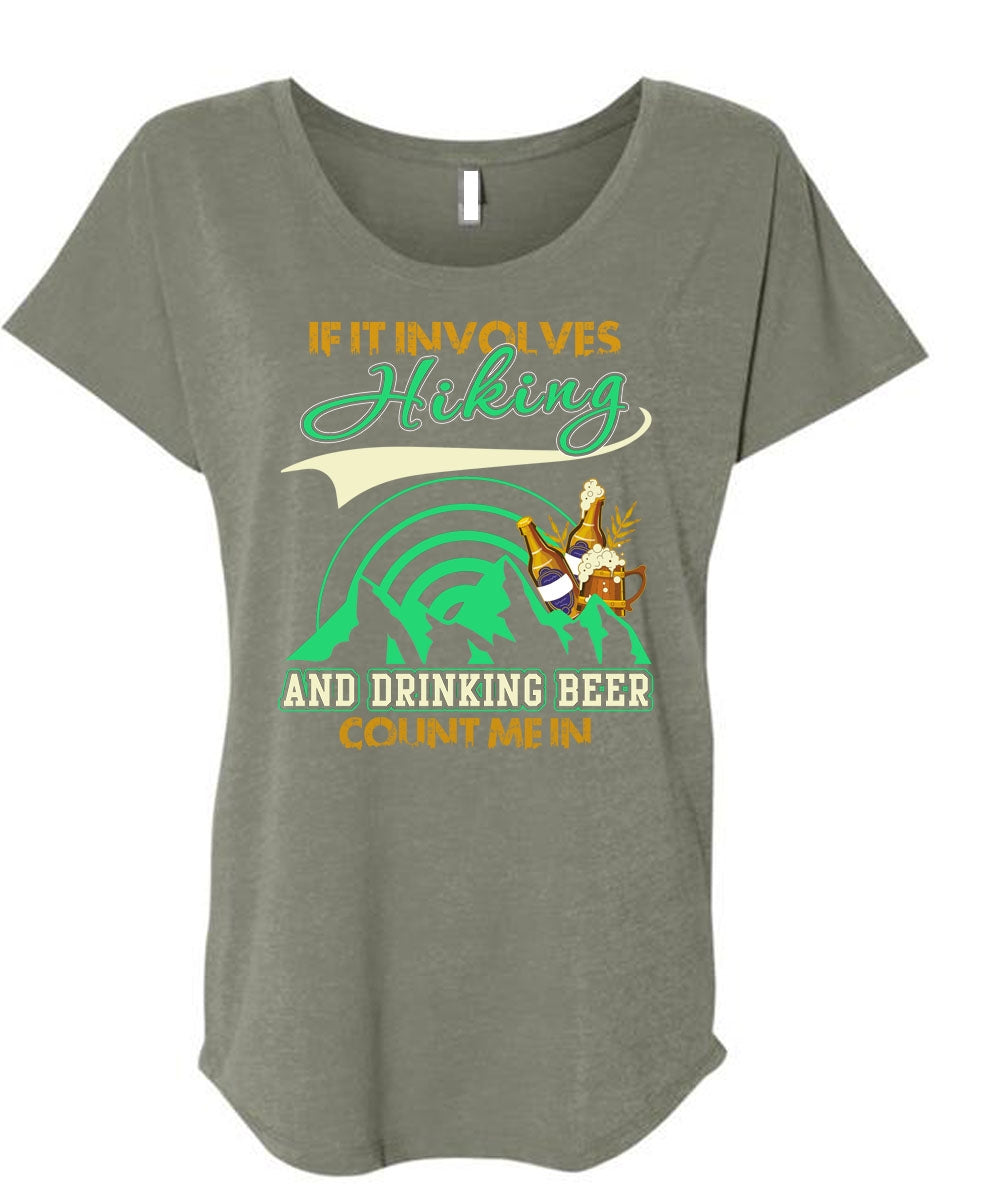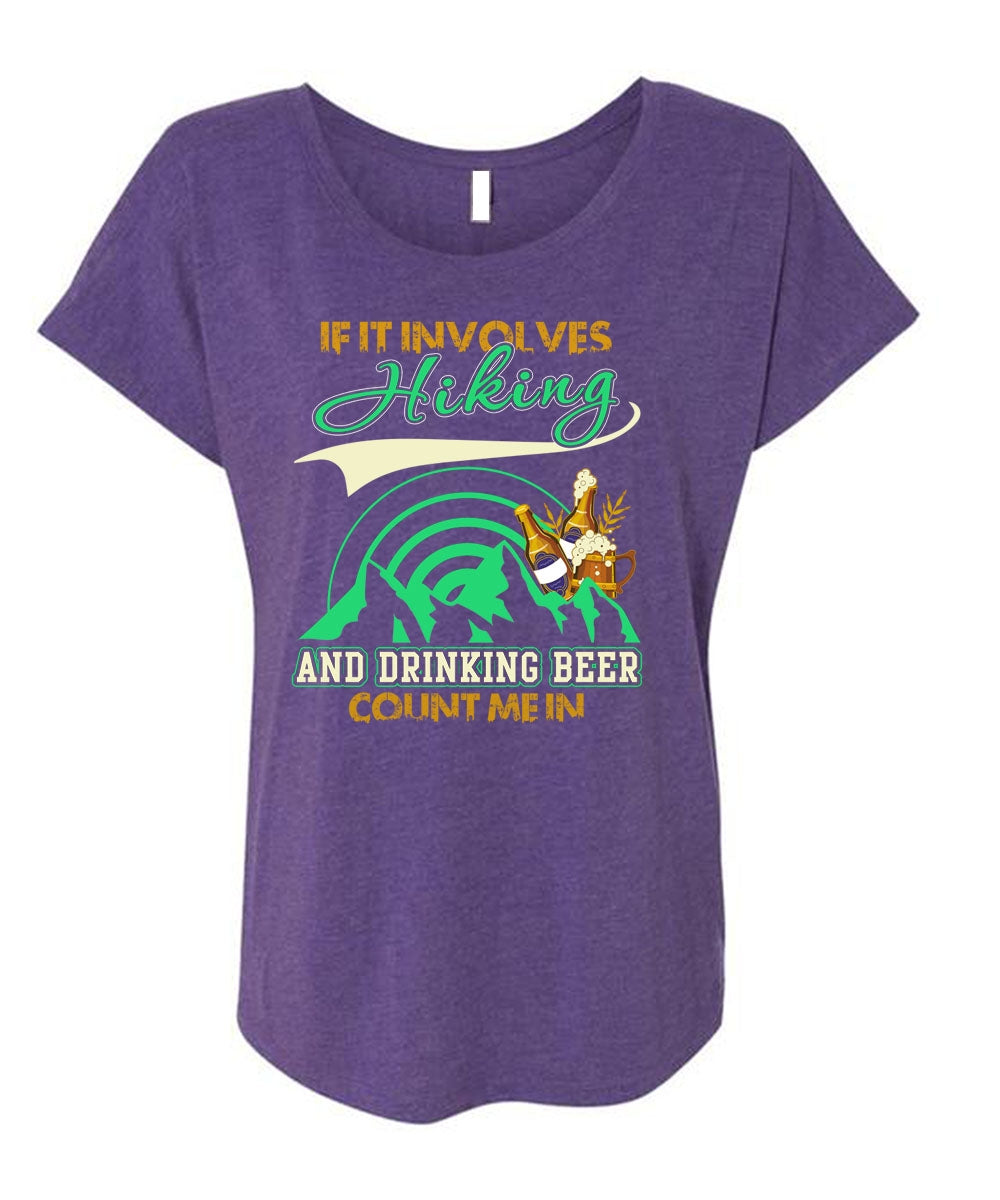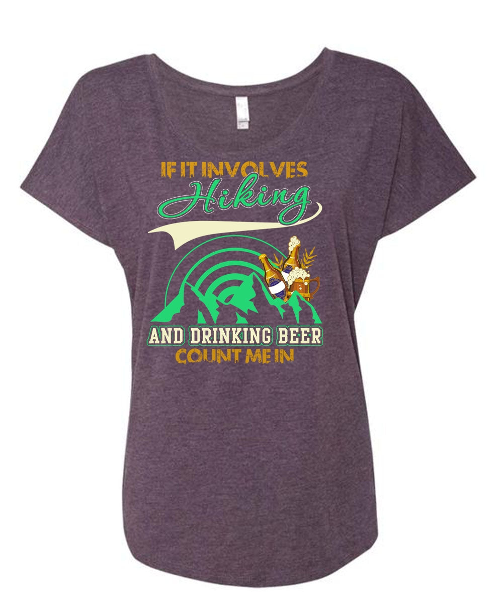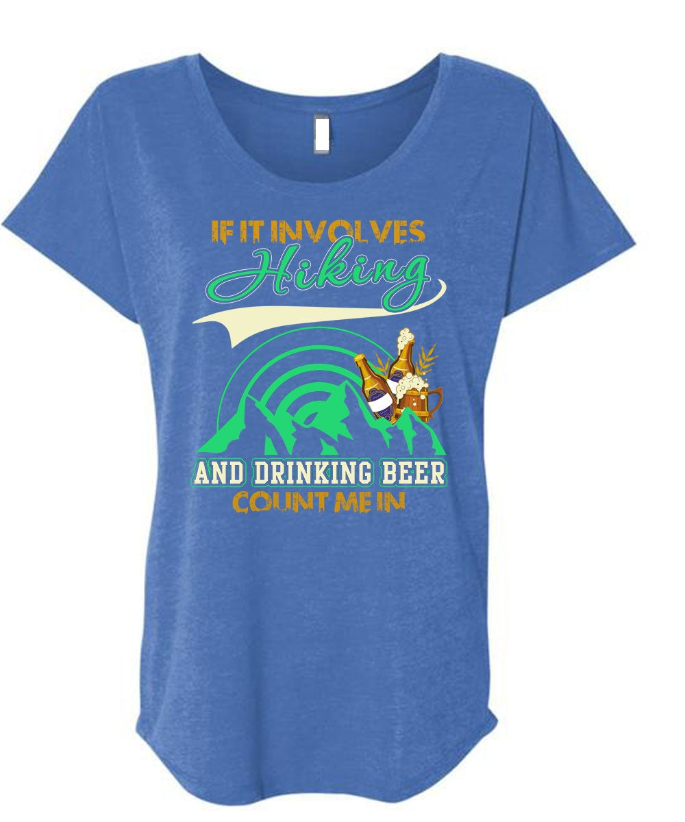 If It Involves Hiking T Shirt, Drinking Beer Count Me In T Shirt, Cool Shirt (Ladies' Triblend Dolman Sleeve)