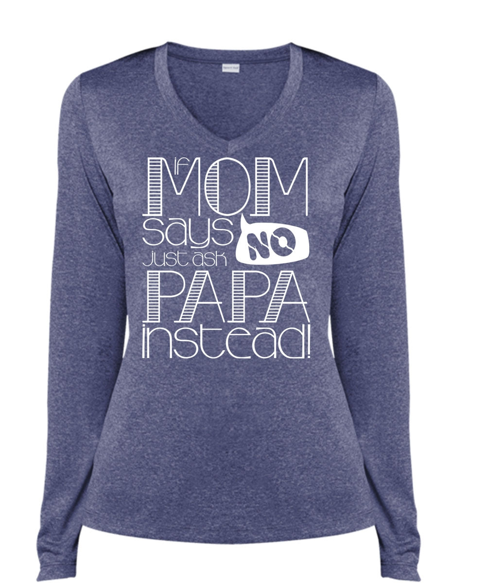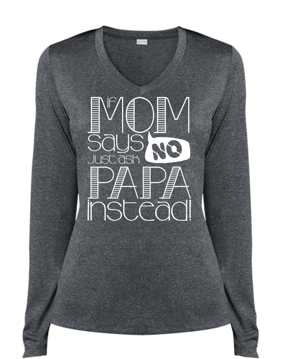 If Mom Says Just Ask Papa Instead T Shirt, Being A Mom T Shirt, Cool Shirt (Ladies LS Heather V-Neck)