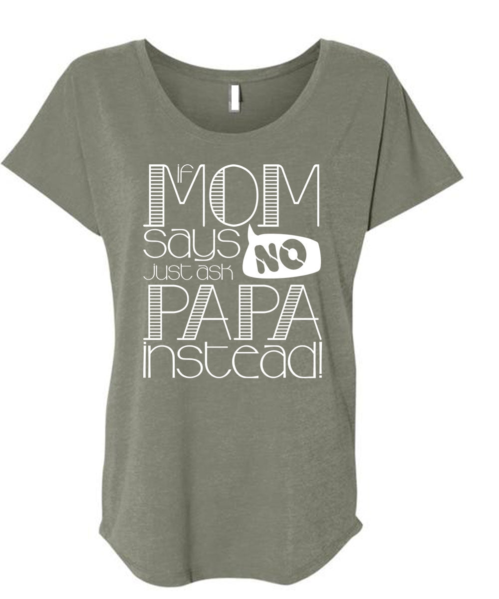 If Mom Says Just Ask Papa Instead T Shirt, Being A Mom T Shirt, Cool Shirt (Ladies' Triblend Dolman Sleeve)