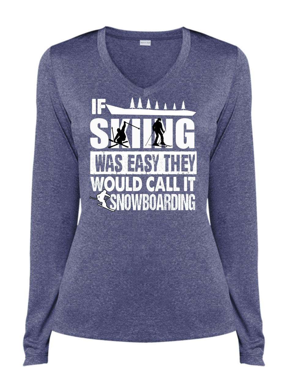 If Skiing Was Easy T Shirt, Call It Snowboarding T Shirt, Cool Shirt (Ladies LS Heather V-Neck)
