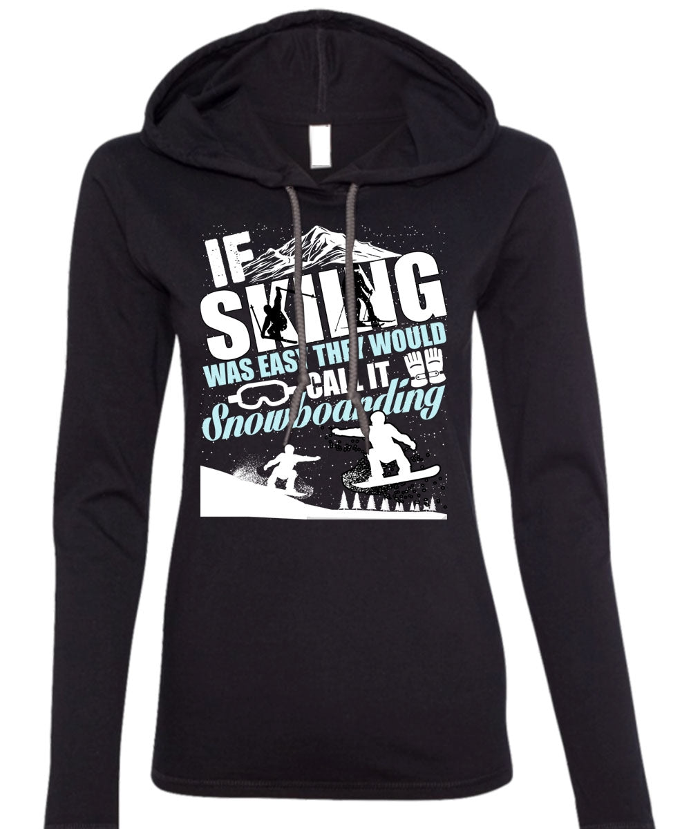 If Skiing Was Easy T Shirt, Snowboarding T Shirt (Anvil Ladies Ringspun Hooded)
