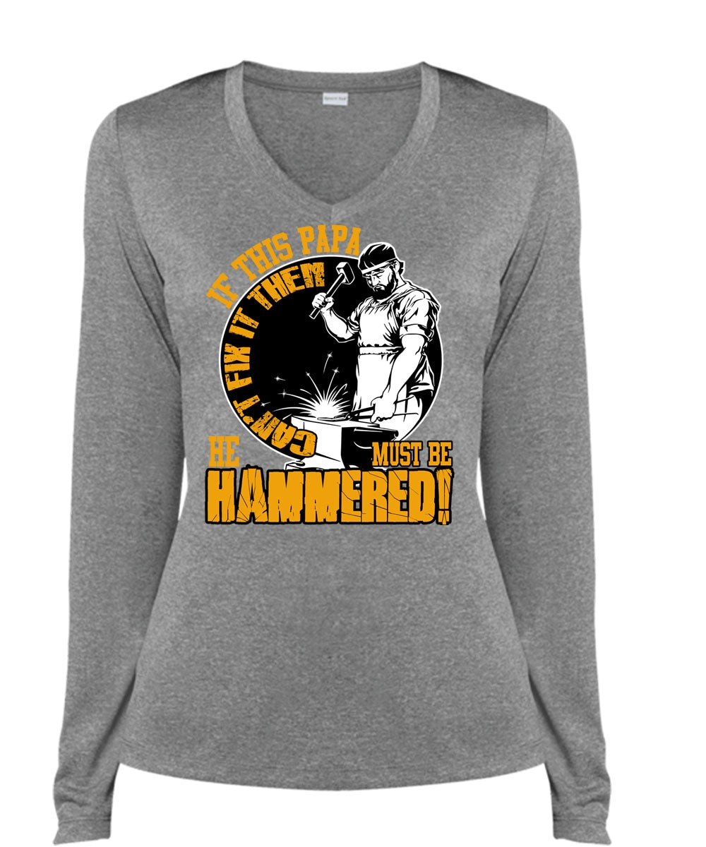 If This Papa Can't Fix It T Shirt, Being A Papa T Shirt, Cool Shirt (Ladies LS Heather V-Neck)